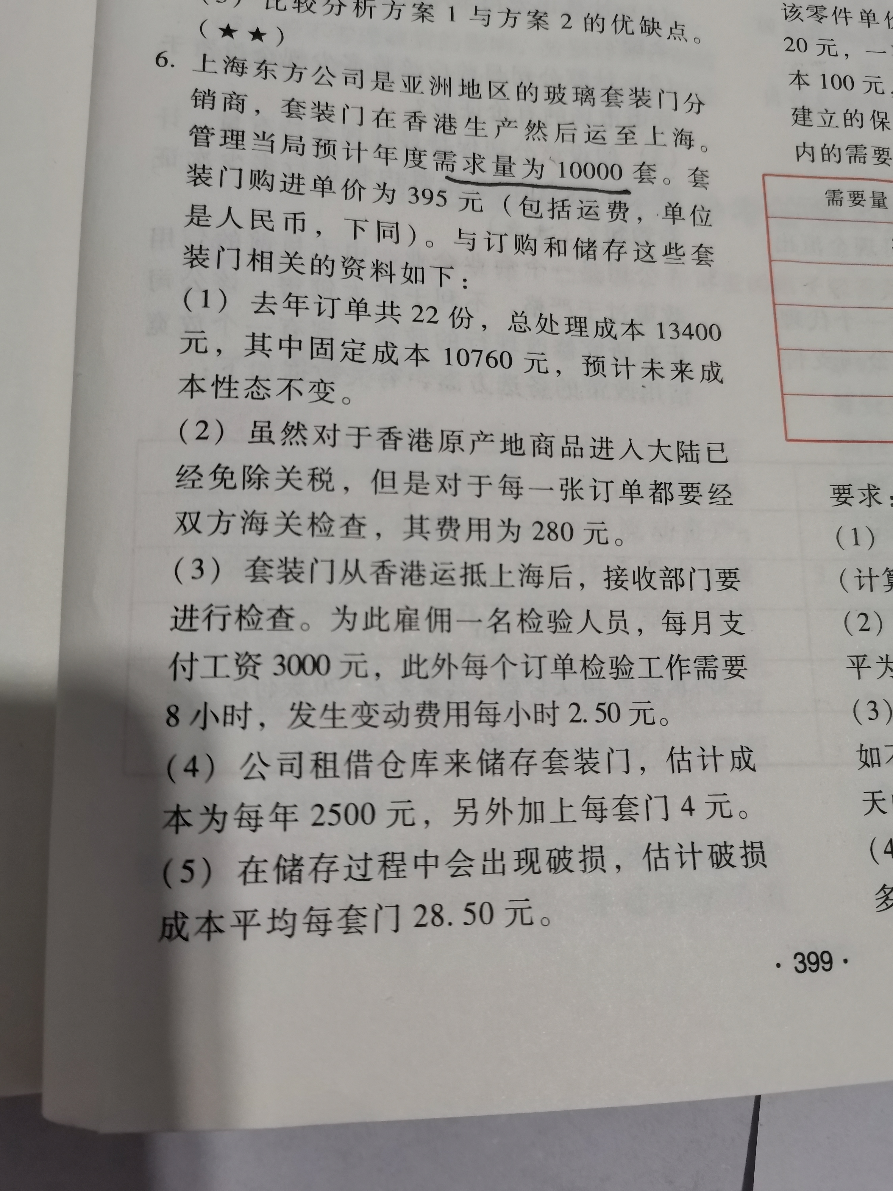 第二张图片里的第(8)个条件,设了100套的保险储备,保险储备成本=保险储备量×单位储存变动成本,100套的数量是固定的,乘以单价就是储存成本。