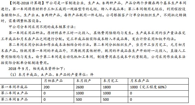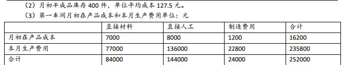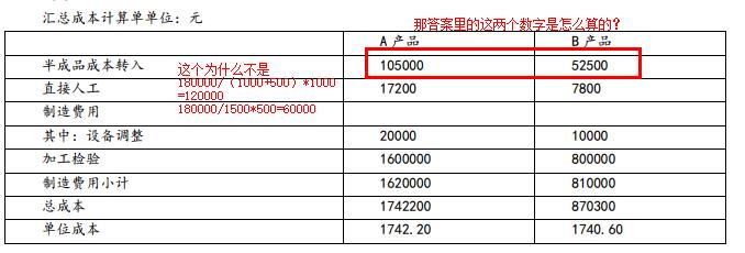 月初半成品库存400件,成本=400×127.5,本期生产1800件,成本180000元,所以根据发出计价采用加权平均,所以加权平均单位成本=(400×127.5+180000)/(400+1800)=105(元/件);