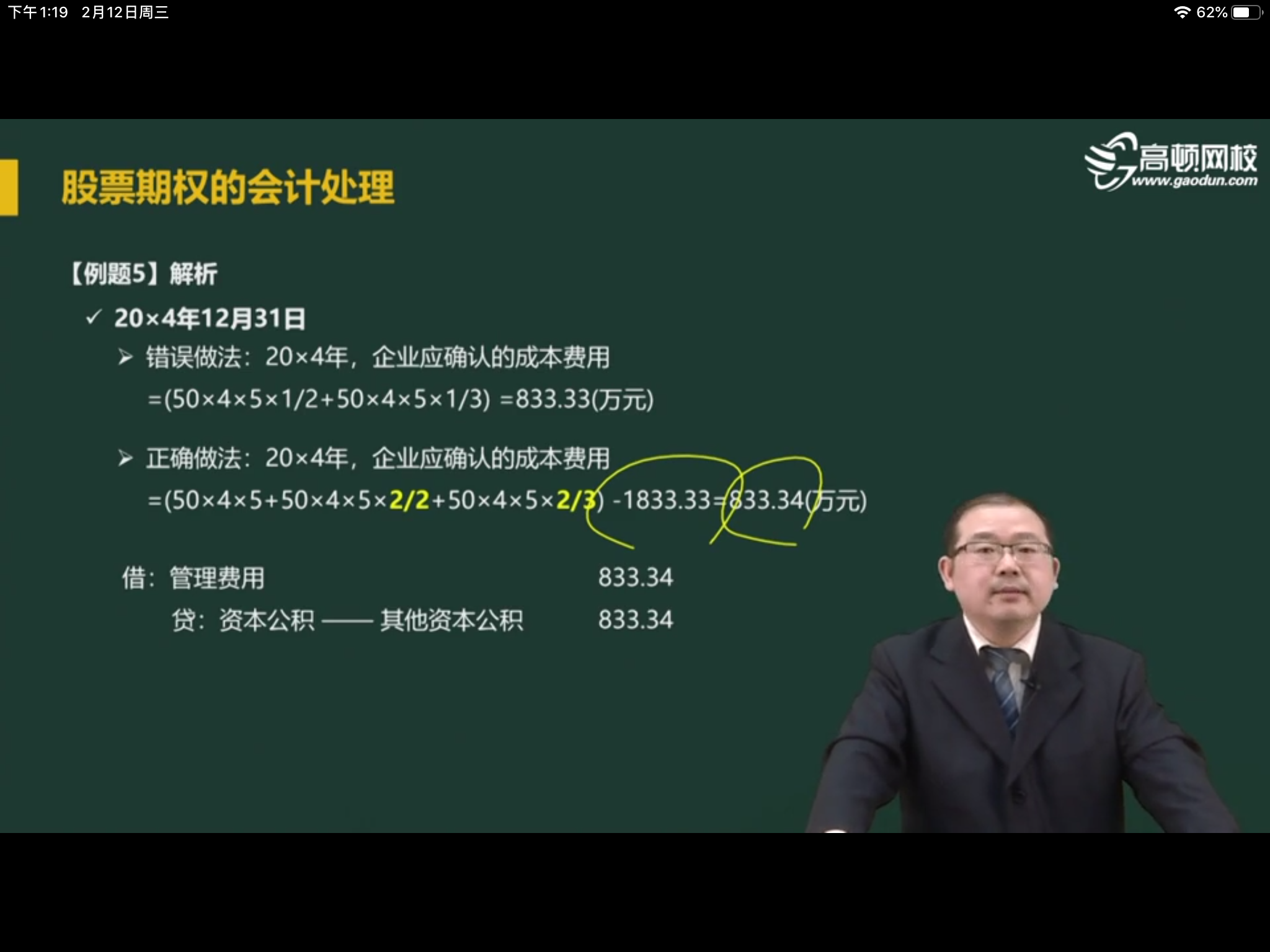 第一个4万只需要工作1年即可行权;而第二个4万需要工作2年才能行权;第三个4万需要工作3年行权,因此第二份4万对应的费用需要在2年内进行分摊,因此要乘以2/2;第3份对应的费用要在三年中进行分摊,因此要乘以2/3.