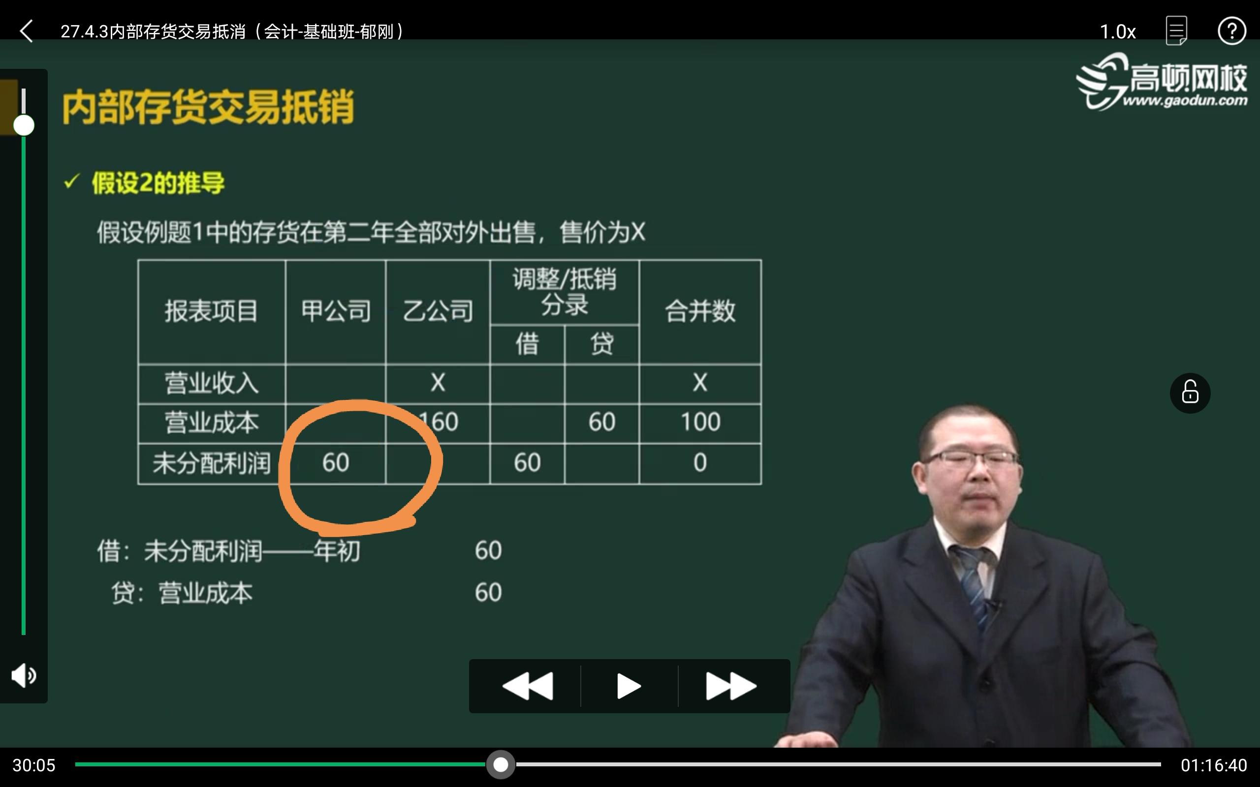 这里的60是 假设第一年的存货全部没有卖,那第一年末存货的就是160-100=60.