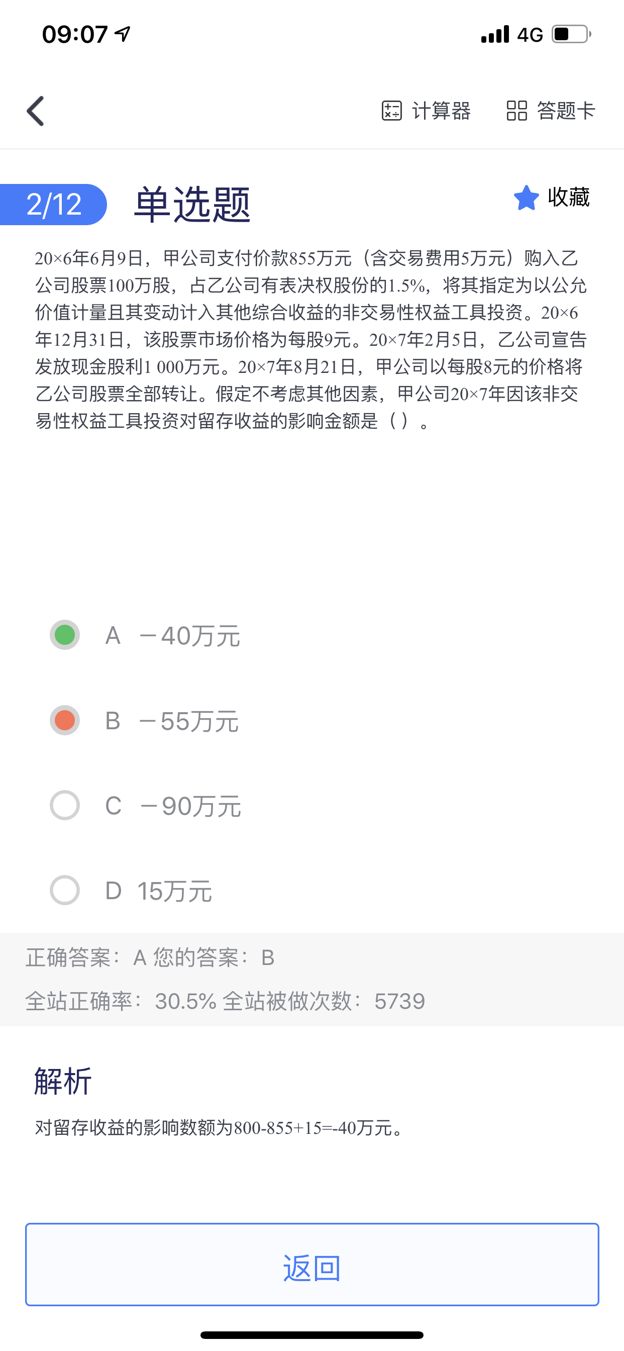 因为题目要求得是2017年对留存收益的影响哦~所以只要按照题目要求进行计算就可以哦~另外题目还有个小坑,投资收益期末会结转进入留存收益~