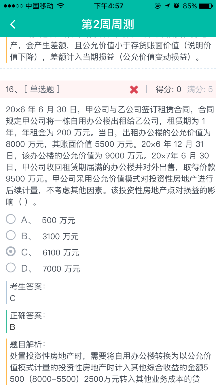 最后一题,16年减值后资产组账目价值是由5500-1500 ...