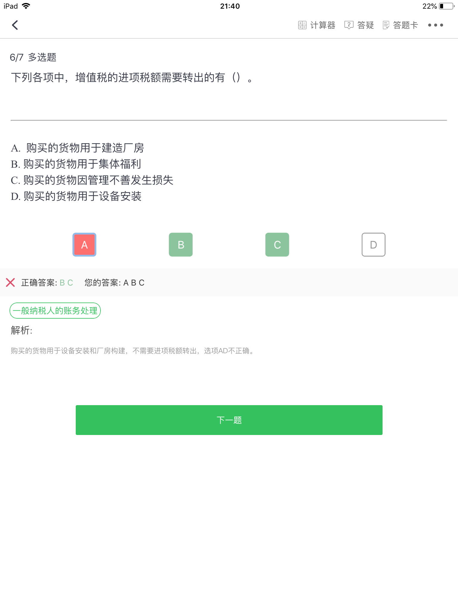 老师 这不是需要转出40%的税在第二年抵扣吗