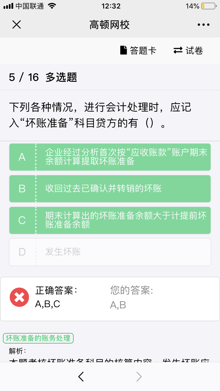 收回以转销的坏账准备2万。此处的坏账准备借方为2万,为啥是(...