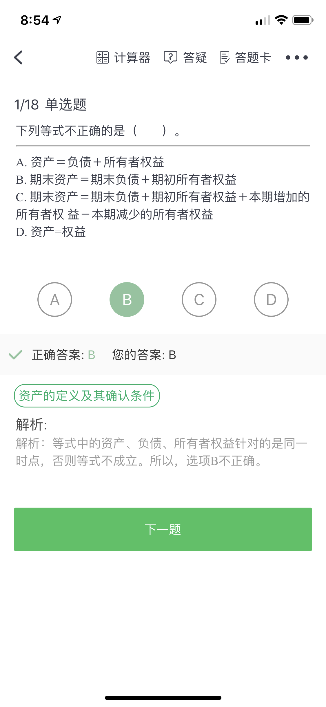 B选项,资产减少,所有者权益不变,总额减少不就是变化吗?B为...