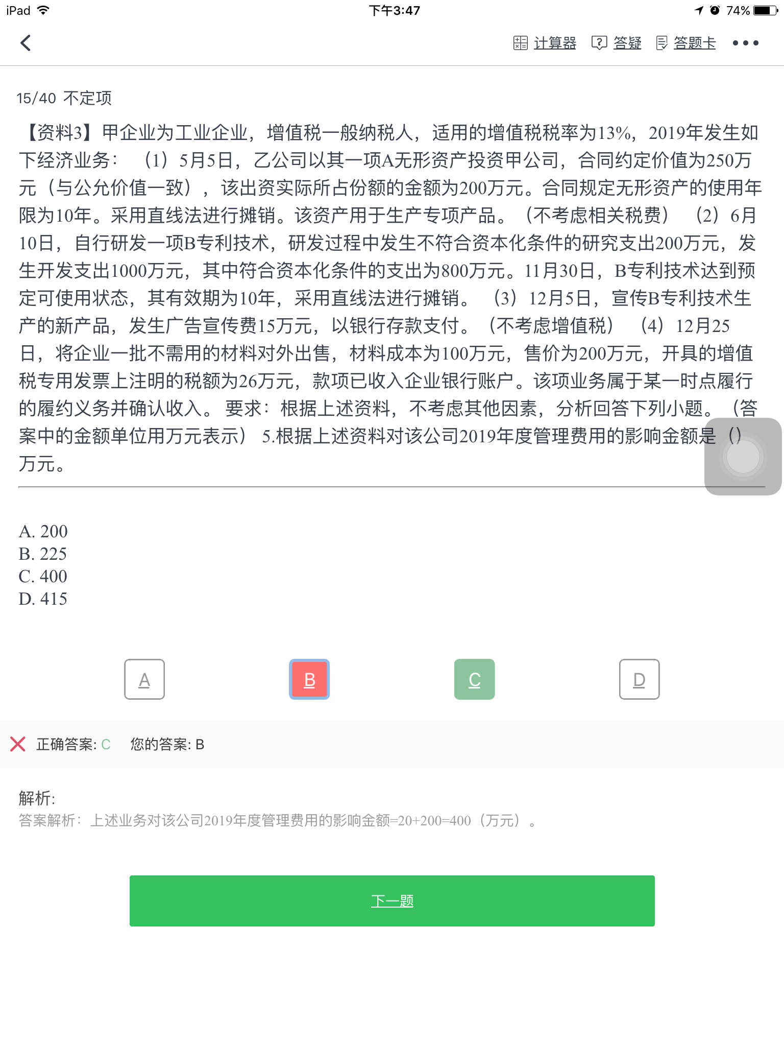 这一题是不是算错了?-400/10000*100%=-4?怎...