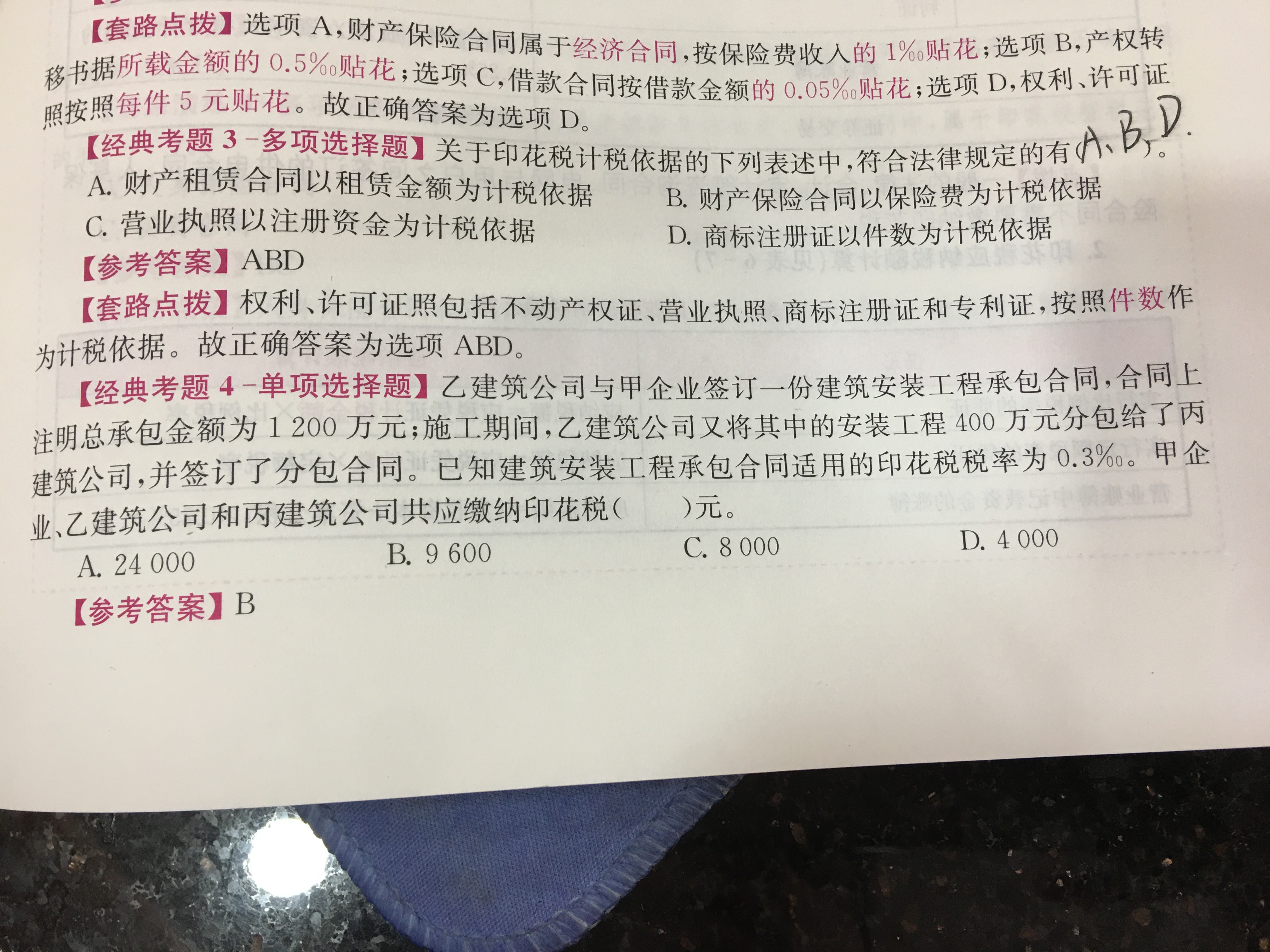 为什么经典考题4答案是9600?答案解析是(1200+400)×0.3%×2×10000。为什么需要乘2和10000呢?