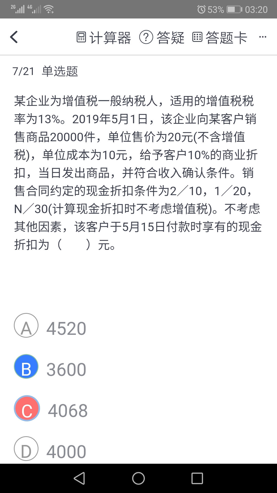 C怎么对了?如果已经确认收入但还没收款的话就用不到现金折扣啊...