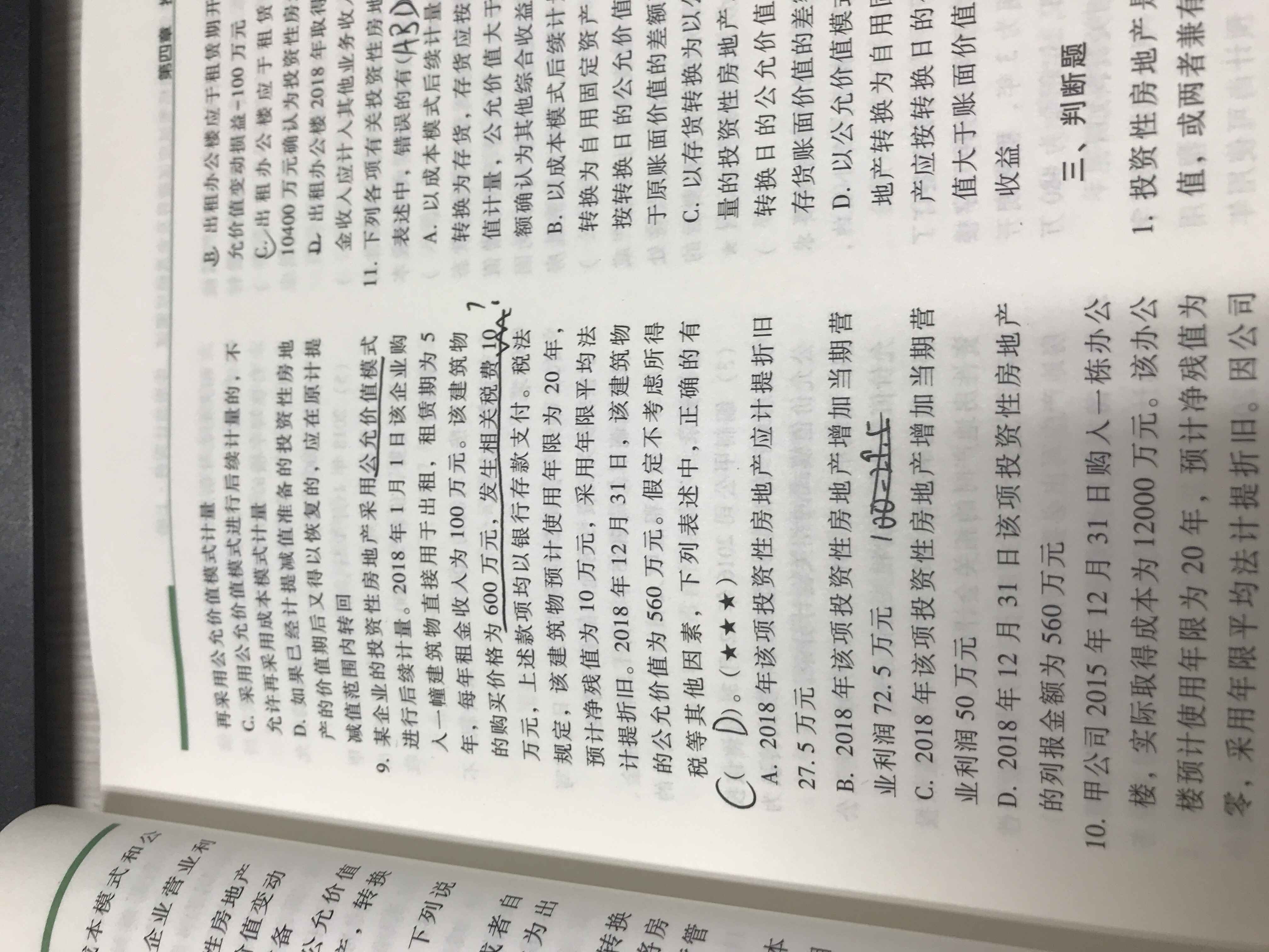 建筑物的初始入账价值包含购买价款和相关税费,即初始成本是610,公允价值是560,公允价值变动损益就是借方50,收入100,影响当期营业利润就是100-50=50