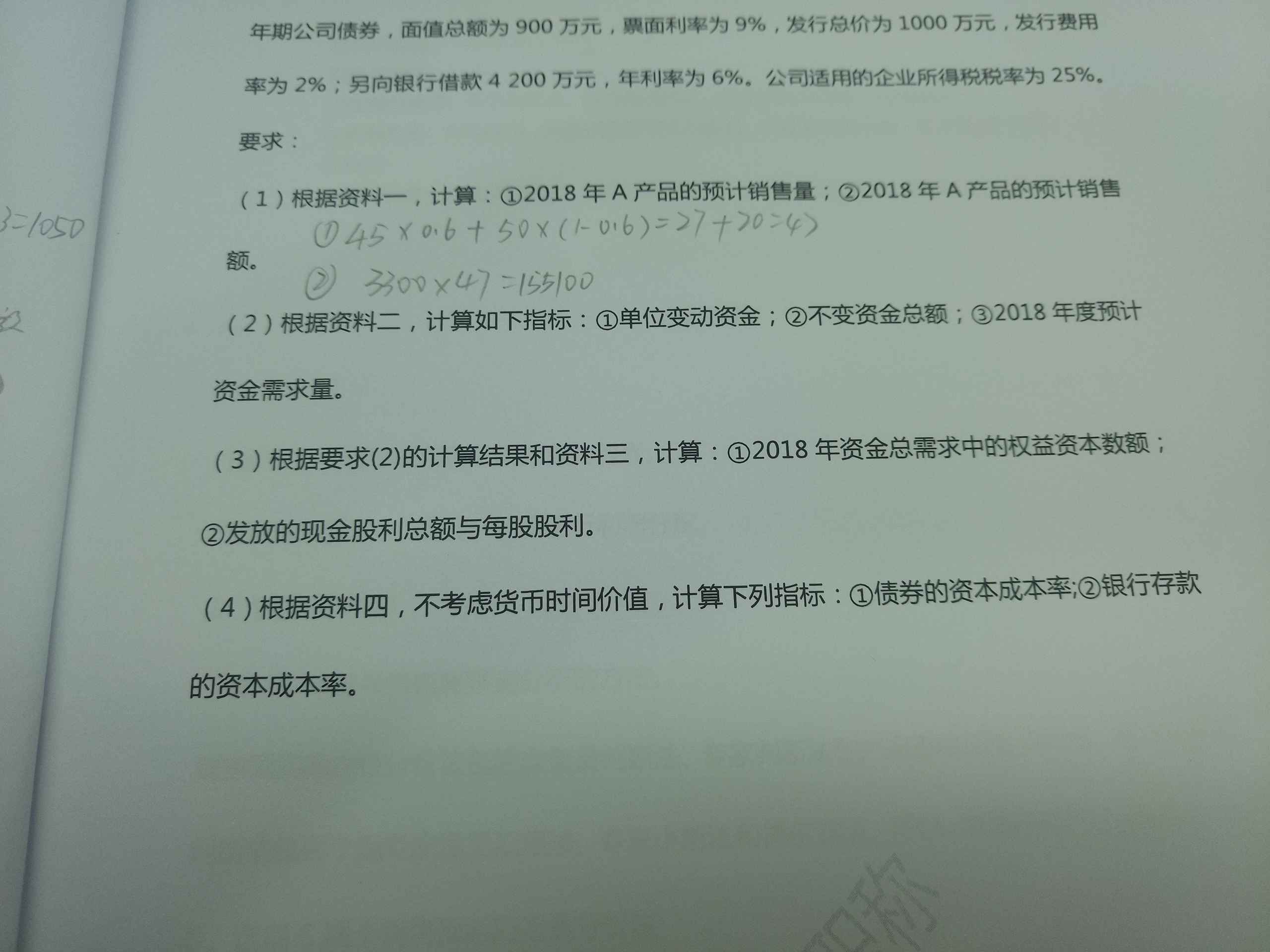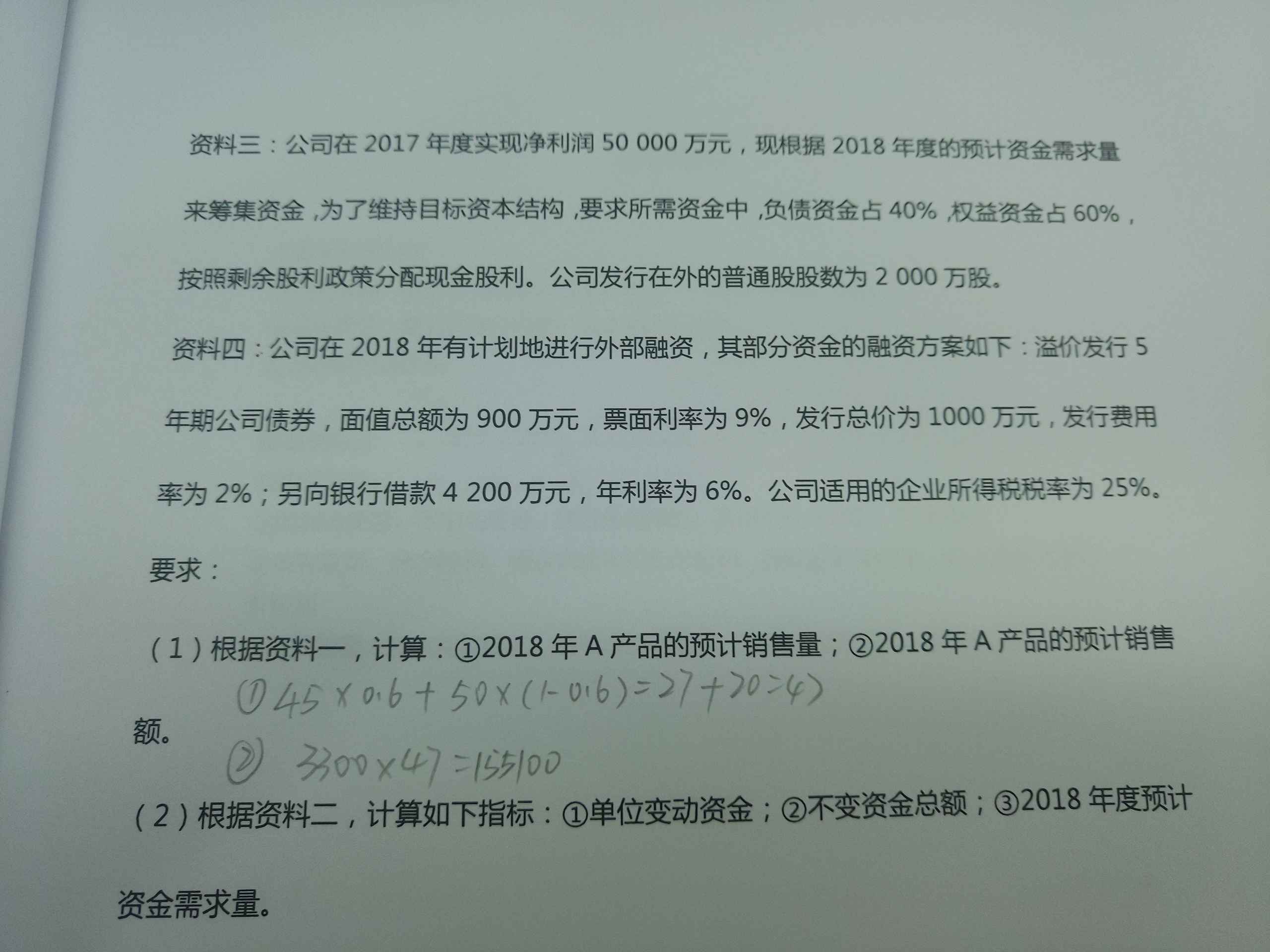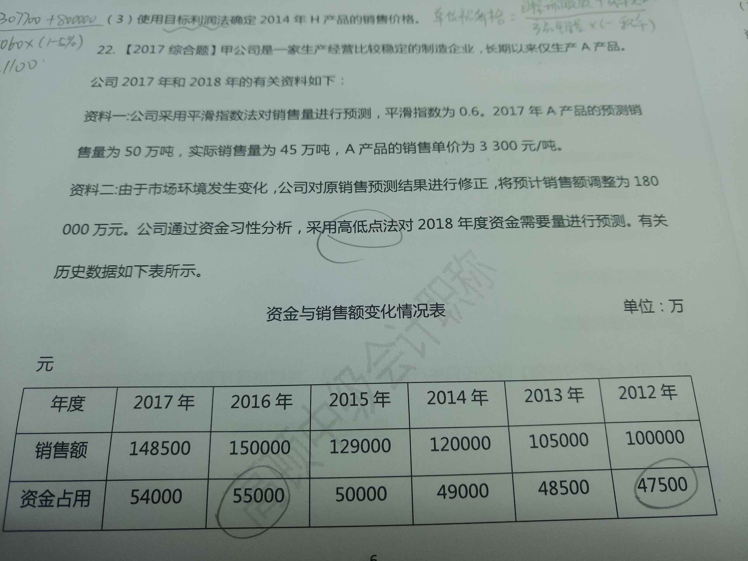 (2)①单位变动资金=(55000-47500)/(150000-100000)=0.15