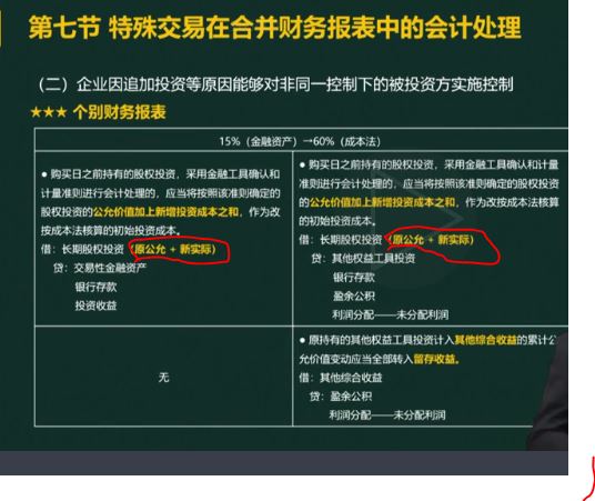 问一下,此处用红色画出了的“原公允”,指的是什么时候的公允?是15%金融资产购买日当天的公允还是追加到60%当天的公允?