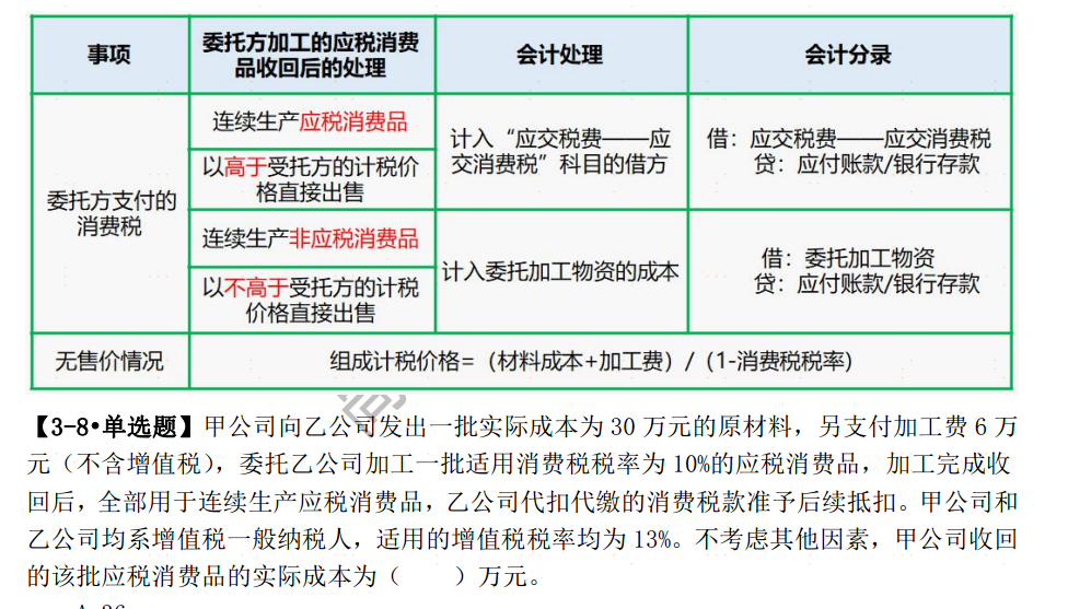 首先你要理解不高于受托方的计税价格这个含义。这个是出现在税法消费税里边的规定。受托方会按照自己销售同类商品的价格计算消费税,这个题里边可能就是50 。并不是用材料成本30去算。然后你要理解消费税是需要用组价公式去计算的。如果无售价情况的那个公式。以不高于受托方的价格出售即回收过来价格不超过50卖出去 ,不用再重复交消费税。如果你已60价格出售,这个时候你就补10元差额对应的消费税就可以了。