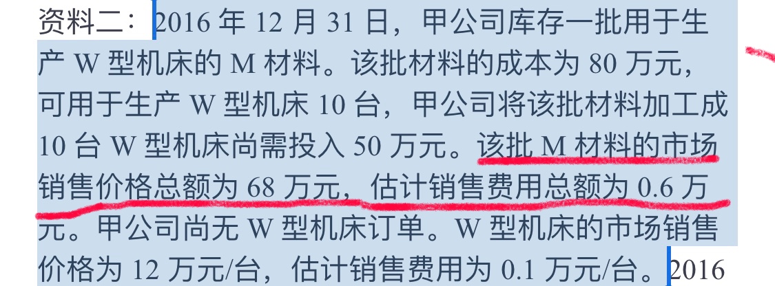 材料的可变现净值也要考虑,题目中材料可变现净值远低于加工产品。
