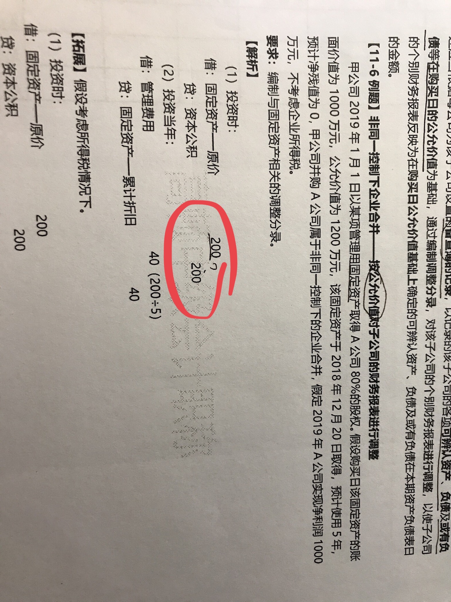 合报的话要从账面价值调整为公允价值,所以这个200是公允价值和账面价值的差额
