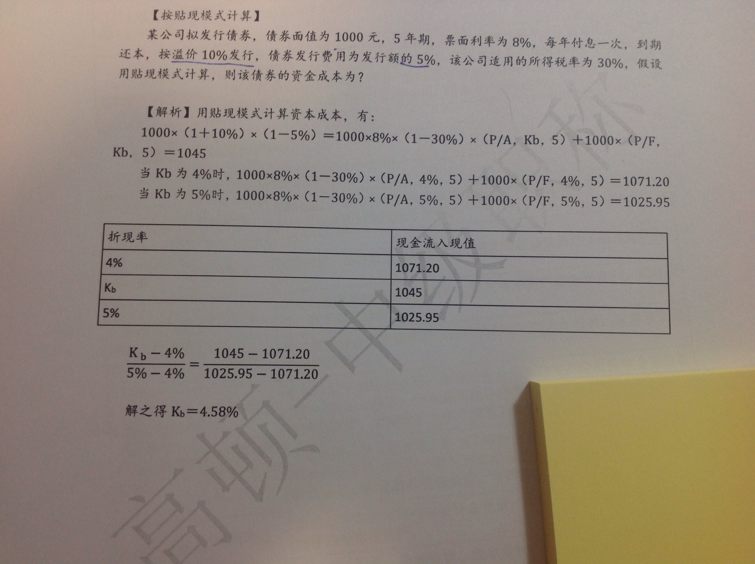 主要是根据题目有给要求,1、一般模式,资本成本率=年资金占用费/(筹资总额-筹资费用)=年资金占用费用/筹资总额(1-筹资费用率),2、贴现模式,筹资净额现值-未来资本清偿额现金流量现值=0,得资本成本率=所采用的贴现率。3、贴现模式比一般模式算出来的资本成本率更精确,超过一年的时间一般都要考虑货币时间价值,也就是用贴现模式,比如你的给的题目明确用”贴现模式“,就是考虑时间价值的,你后面贴的题说是一般模式,就按一般模式的公式来。