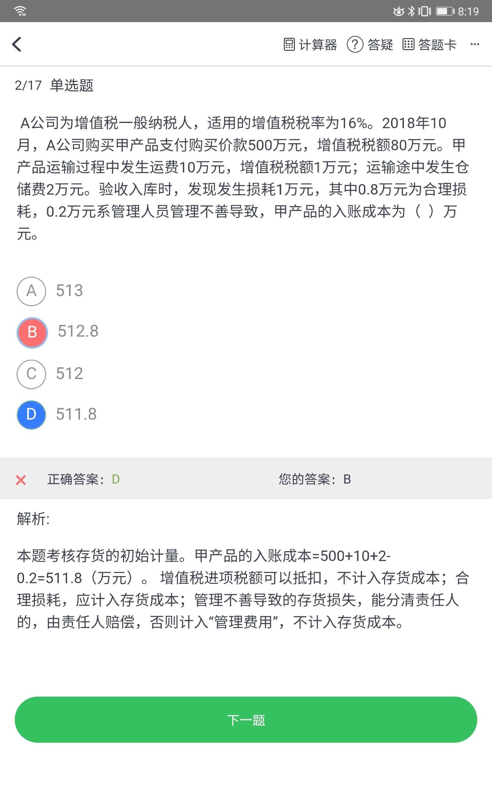 我计算方法是500+10+2+0.8,为啥不是这样做?