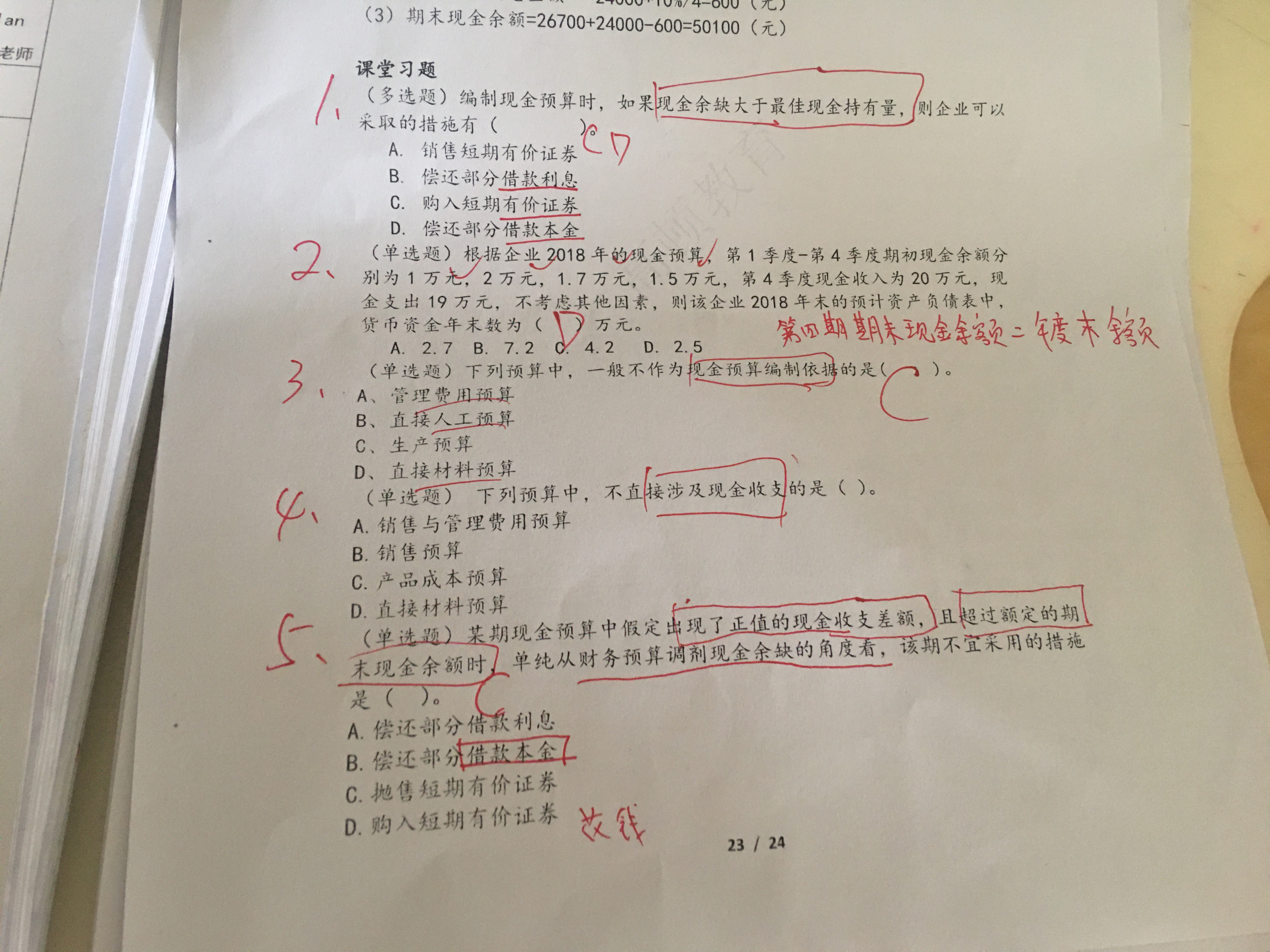 第一题,因为题干说现金有的多,所以我们要花出去,还本金和还利息都是花钱。