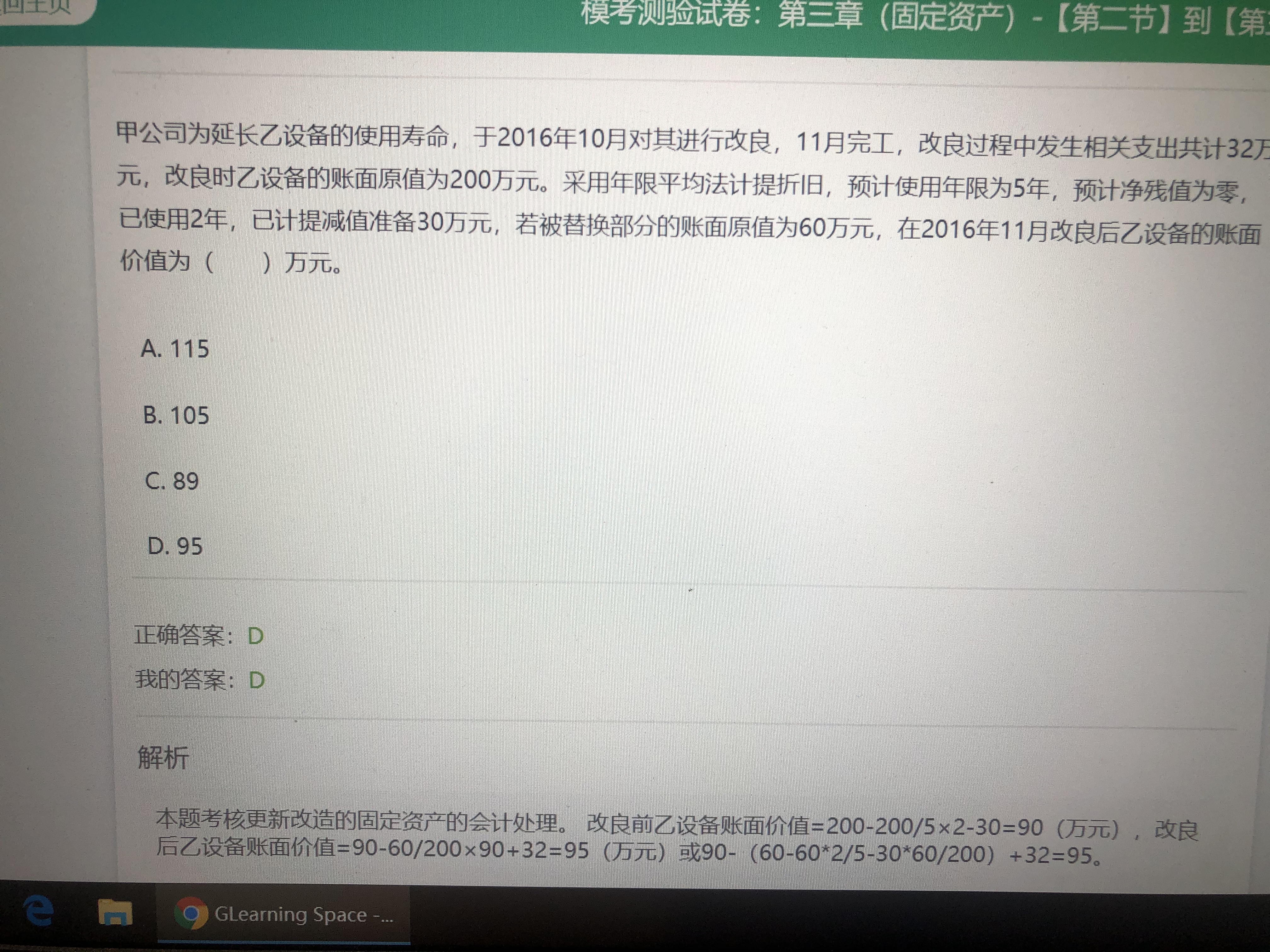 同学放的这道题是没有同学说的数据的,这道题是关键将替换部分的账面价值扣减掉。而题中告诉的是原值,所以需要减去折旧后的账面价值扣除。