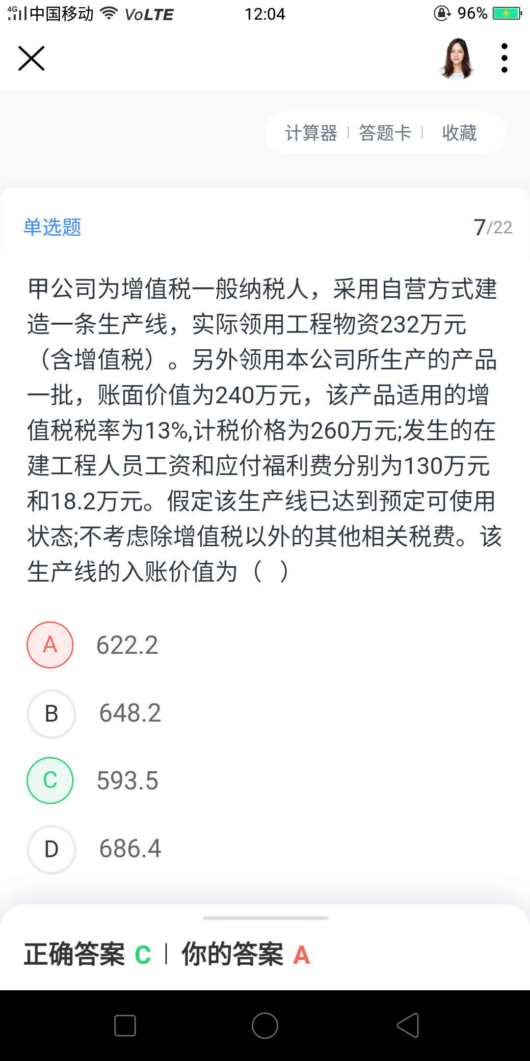 请问老师 这题算出来是4256.64 问什么答案选A 没明白...