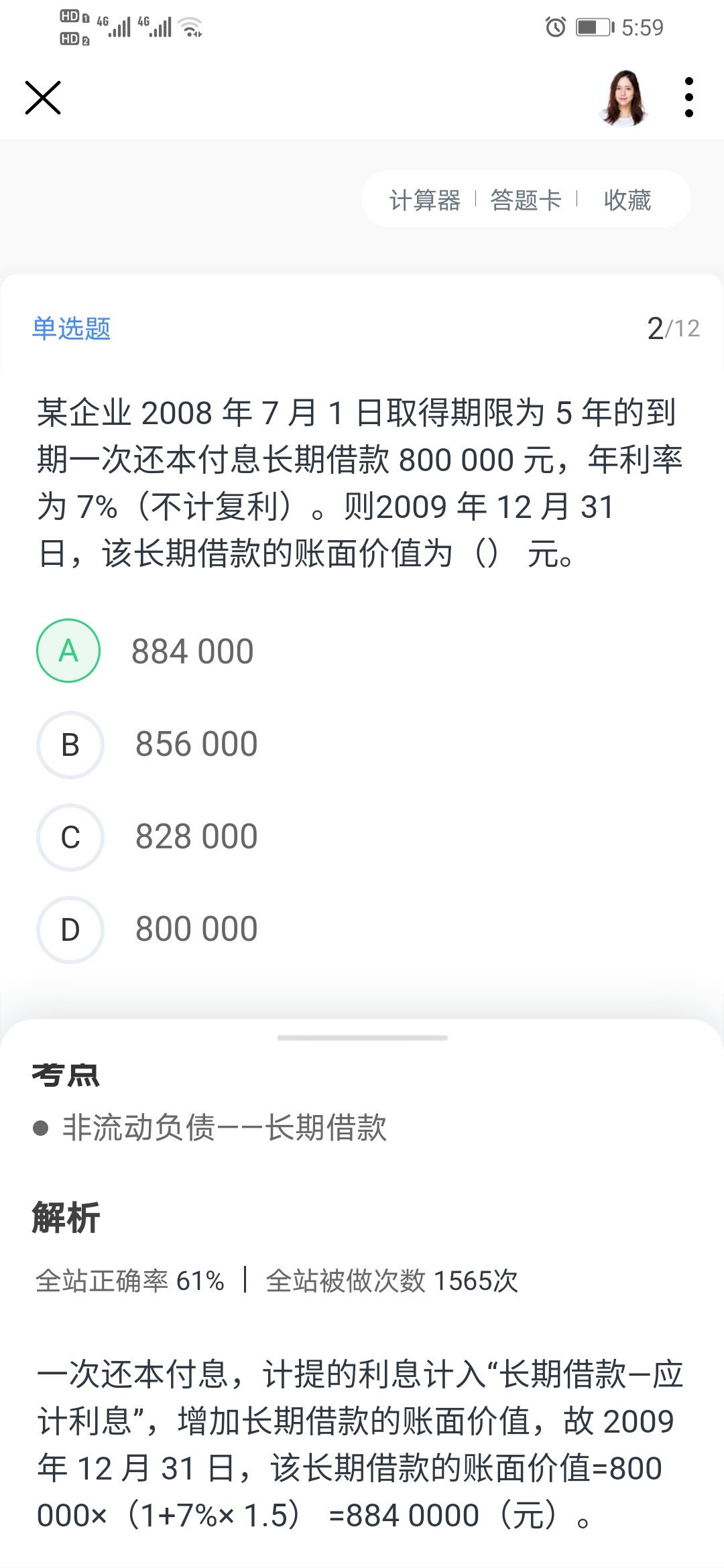 请问老师 这题算出来是4256.64 问什么答案选A 没明白...