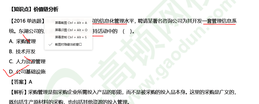 老师,这个题目为什么不选基础设施呢?基础设施不是包括企业的,组织结构,控制系统等的吗?这里面这个管理信息系统不也是系统类的,就想着是基础设施呢?