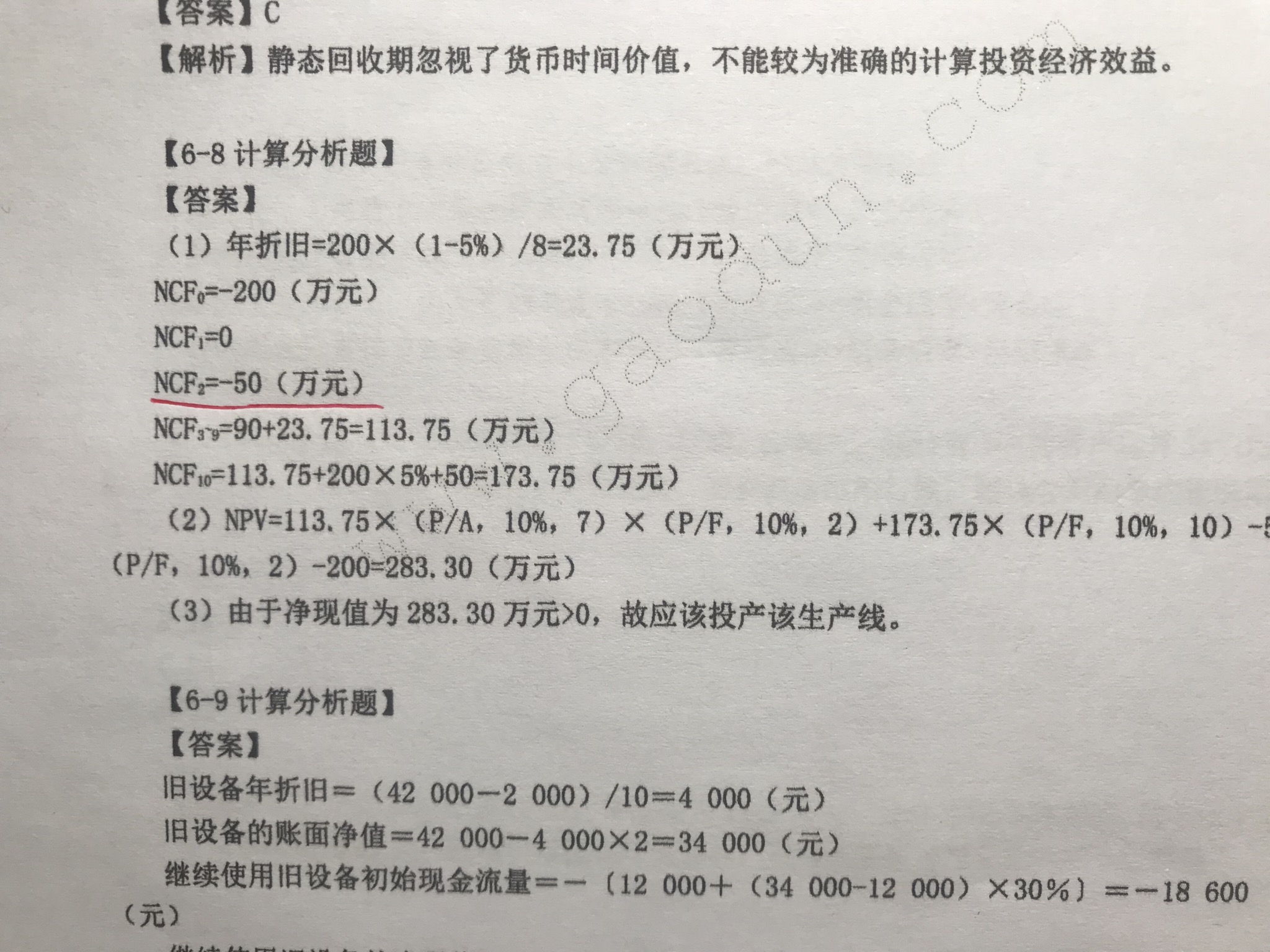 6-8 为什么投产时垫付的50万属于第二年而不是第三年?