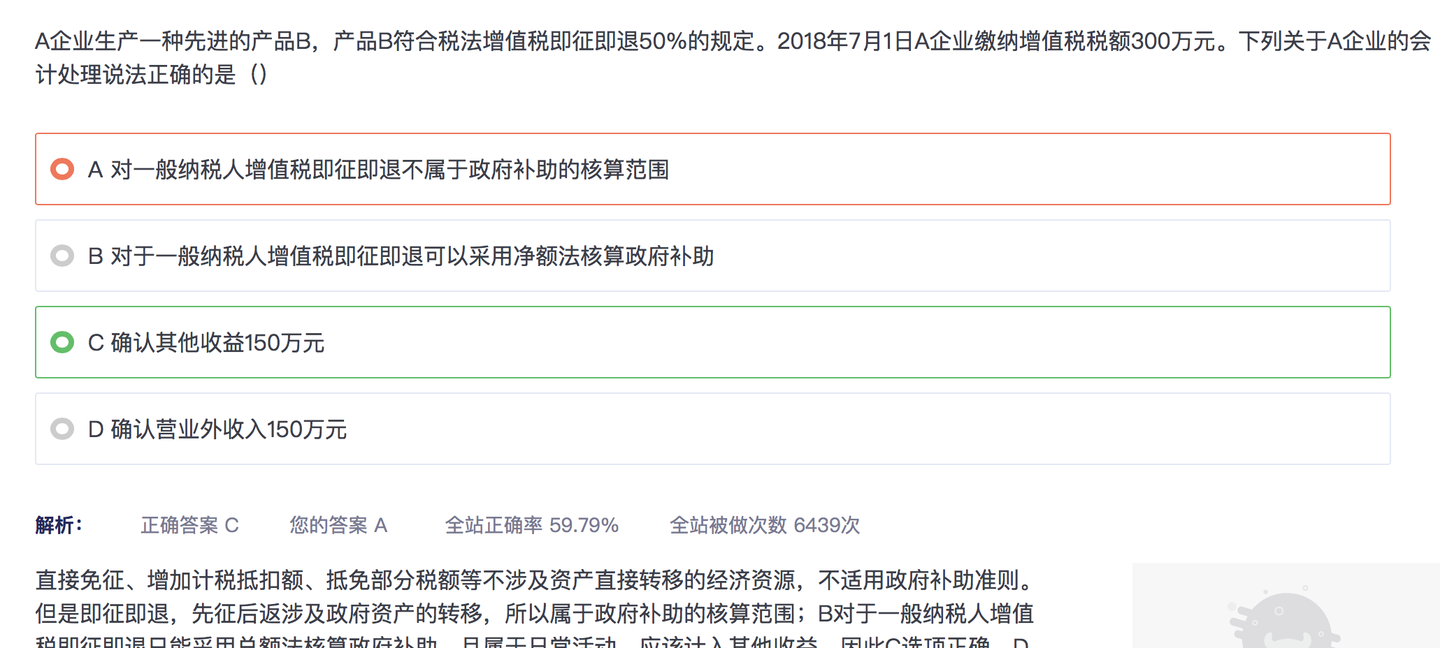 在讲义第一节,政府补助的主要形式中即征即退特别说明增值税不属于政府补助,为什么解析不一致呢?