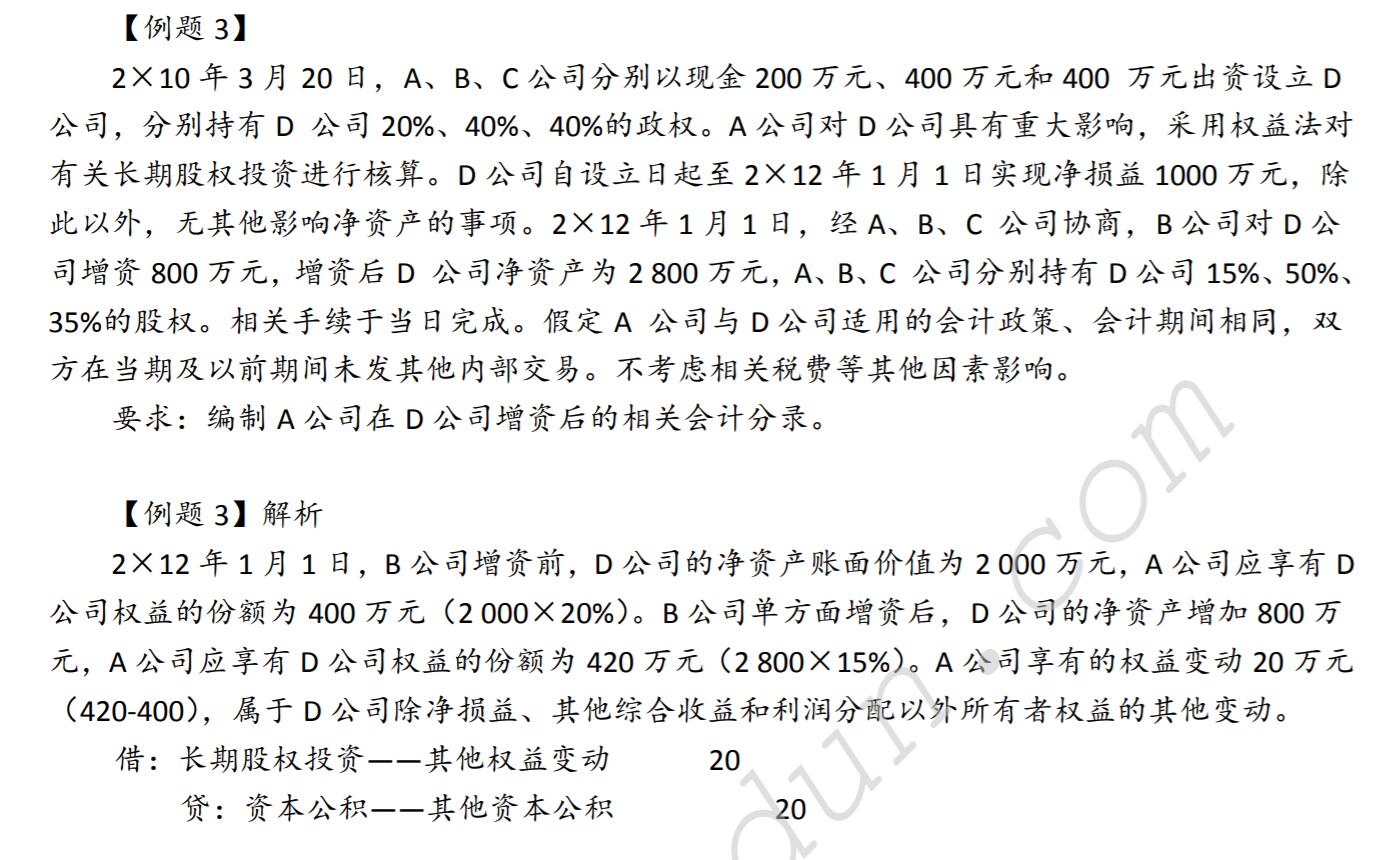 老师,两个问题:1.这个例题里面增资后的持股比例15%、50%、35%是怎么计算的?2.A公司增资后持股比例15%是不是“权转公”,差额是不是应该计入投资收益呢?