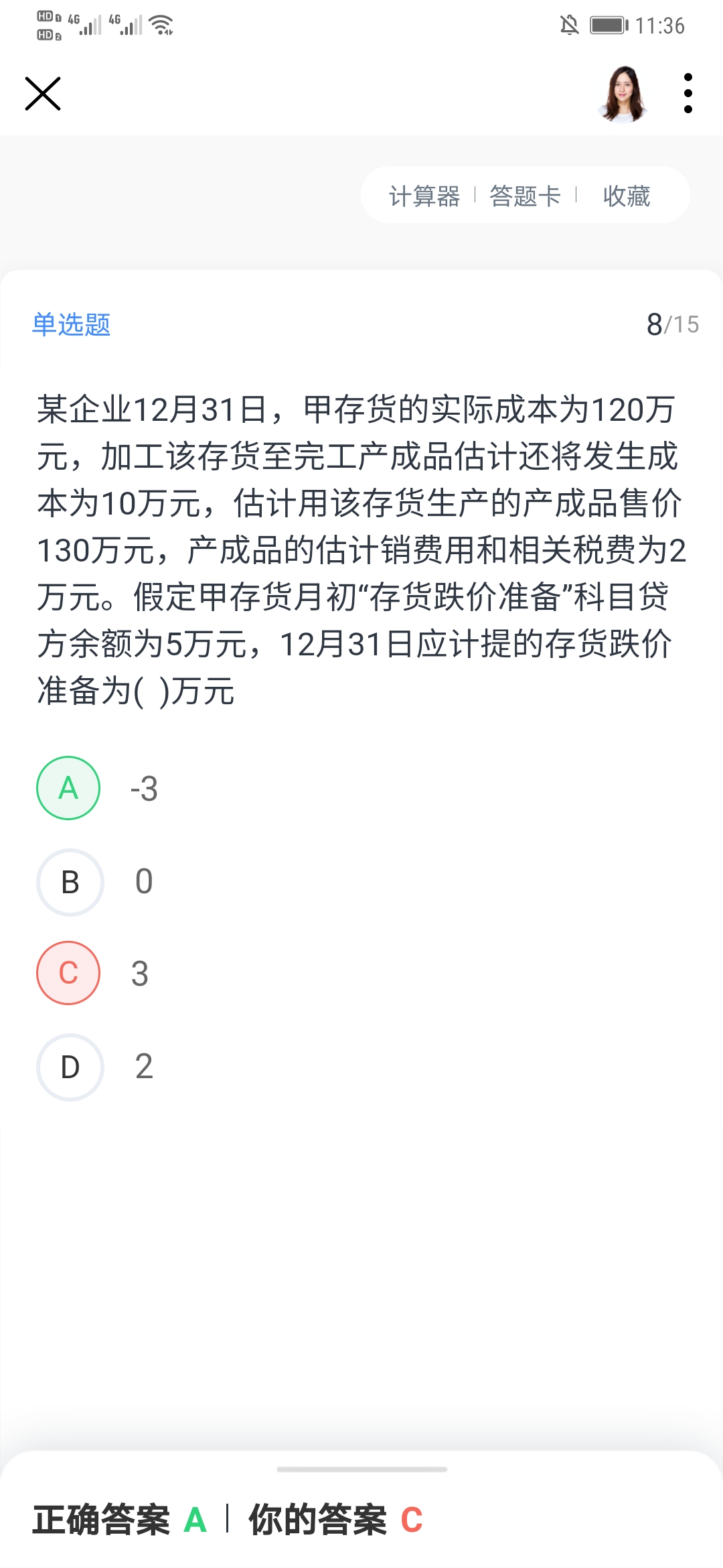 可变现净值=130-10-2=118万小于成本120万,期末减值=120-118=2万,期末余额只有2万, 期初有5万,转回3万,-3万