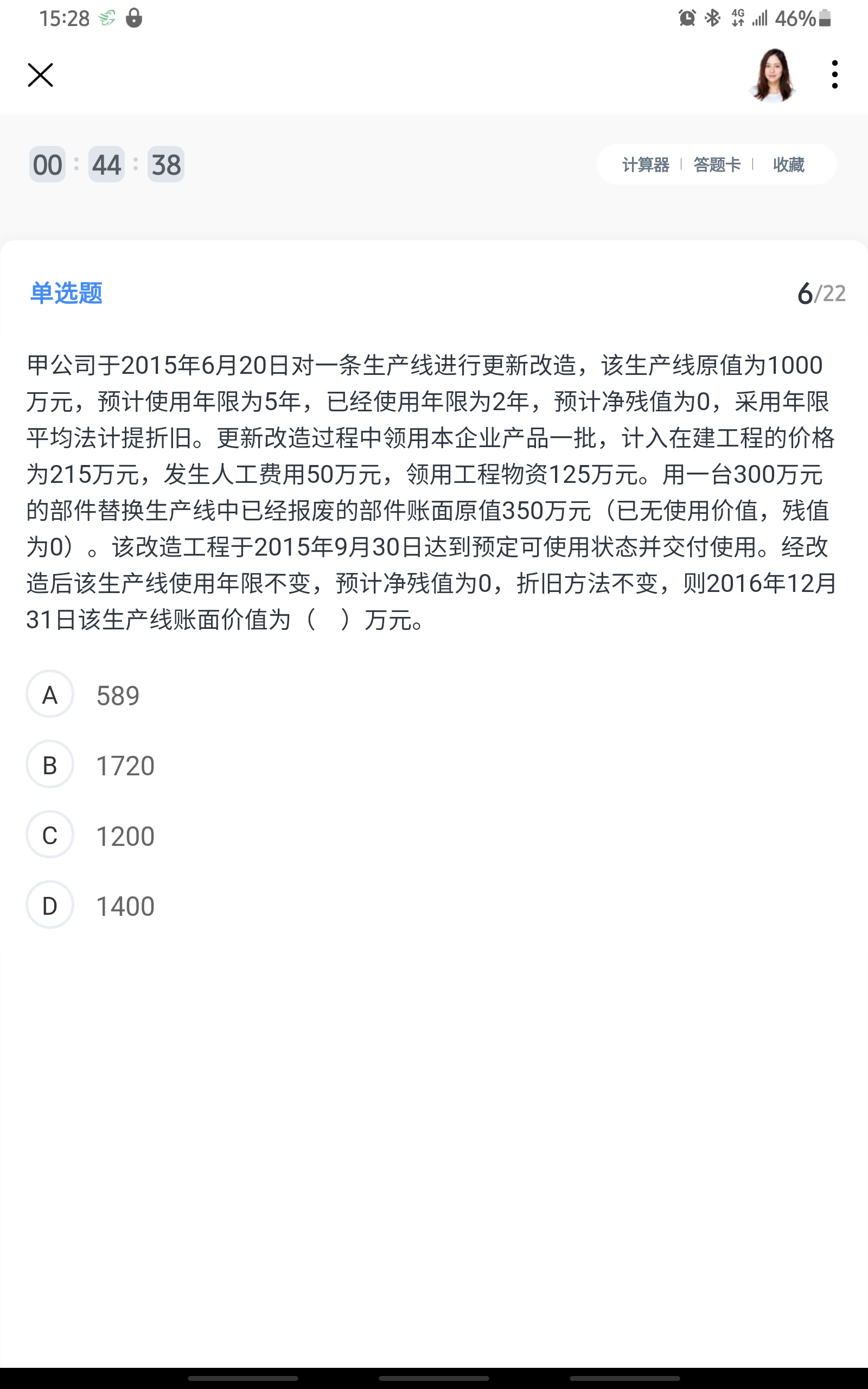 最后一题,16年减值后资产组账目价值是由5500-1500 ...
