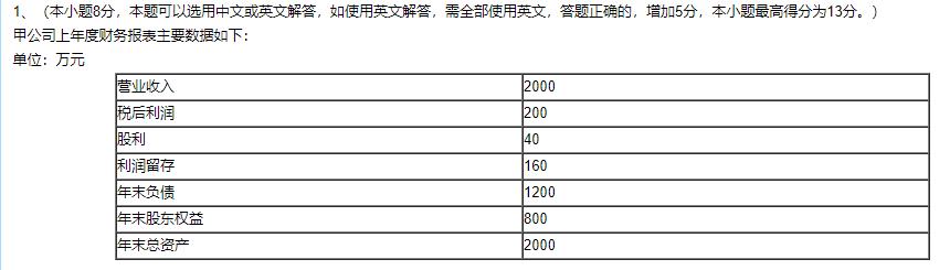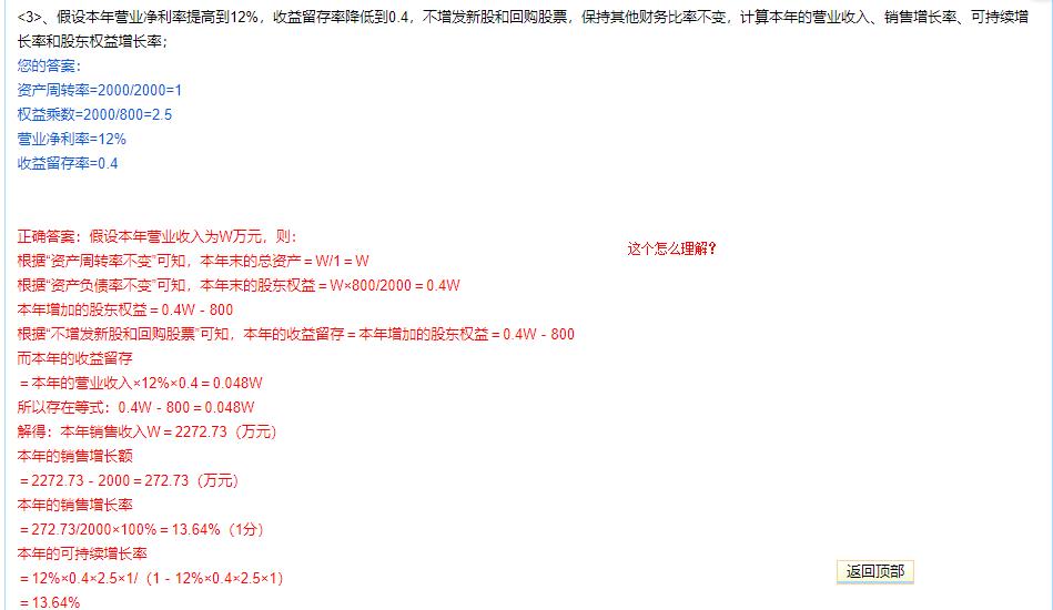 2.公司上年度资产周转率=收入/总资产=2000/2000=1,本年该比率不变,本年收入为W,那本年的总资产=本年收入/资产周转率=W。