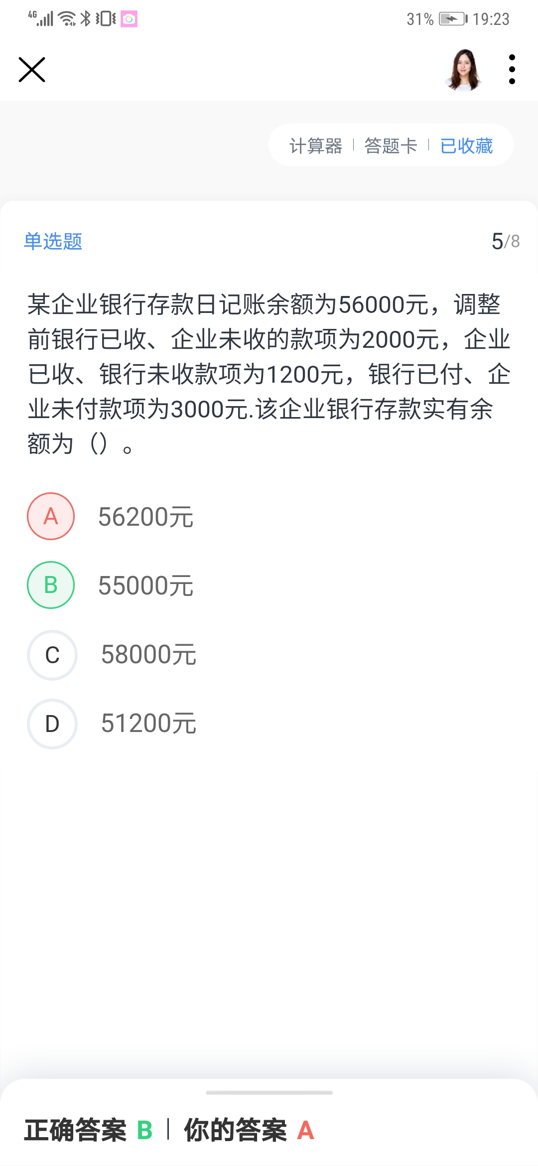 企业的银行存款日记账56000+银收企未收2000-银付企未付3000=55000~