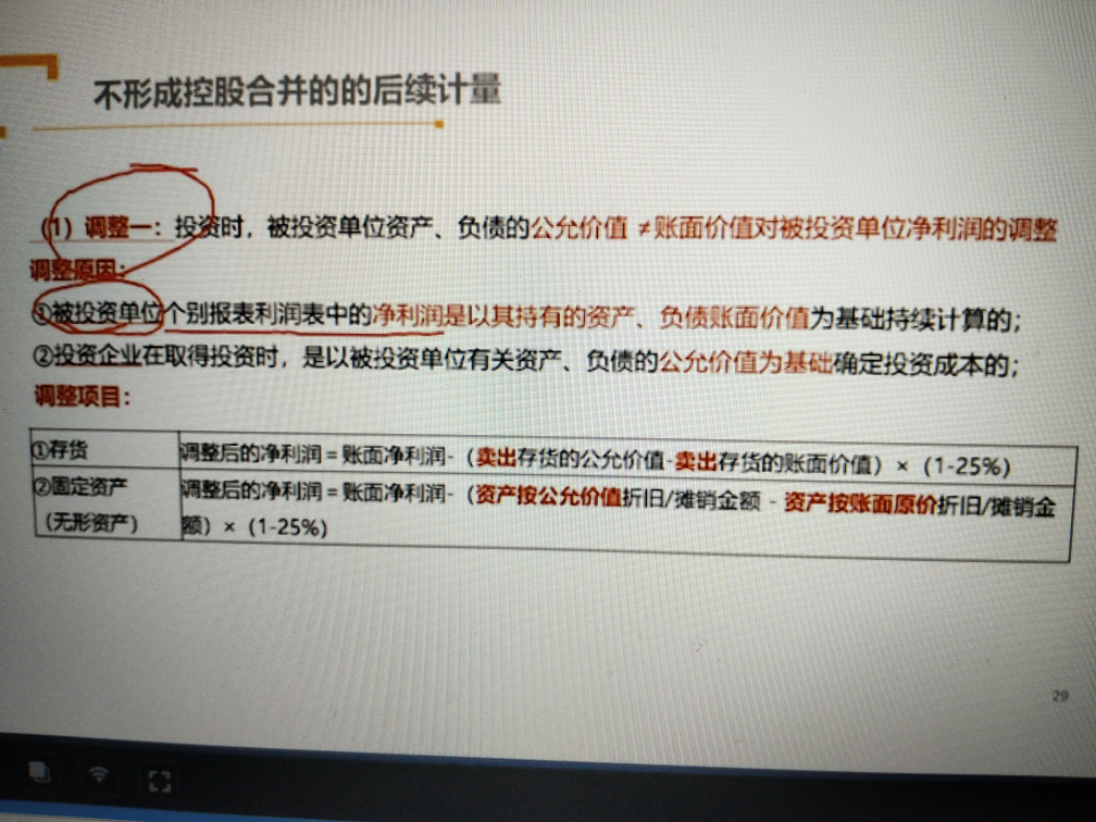 关于长投权益法下实现净利润时因公账不相等进行调整,问是否在股...