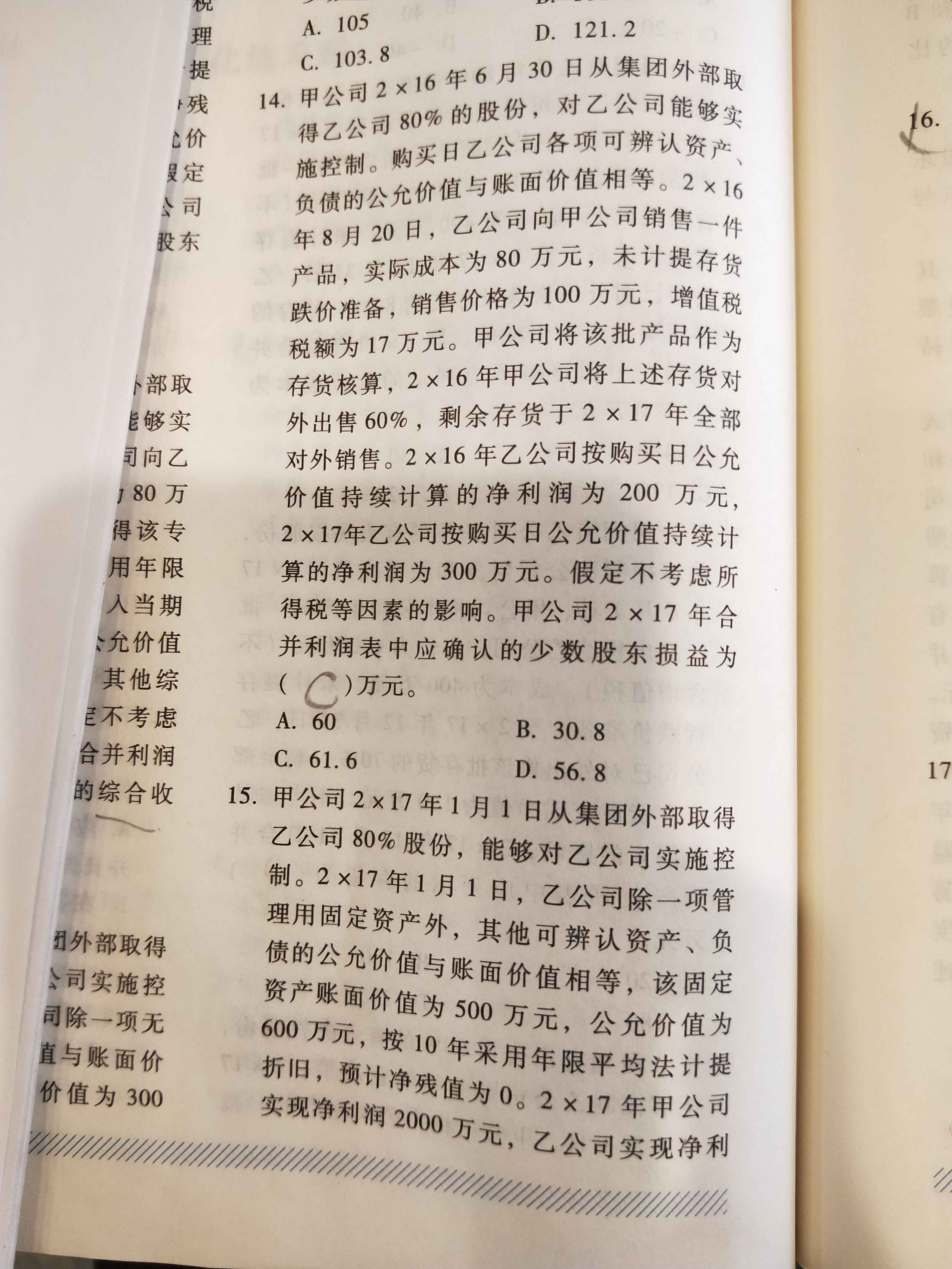 轻一P 591 老师,麻烦您帮我看看单选15 我按答案计算下来金额对不上啊(ಥ_ಥ) 是我哪里没有注意到吗?