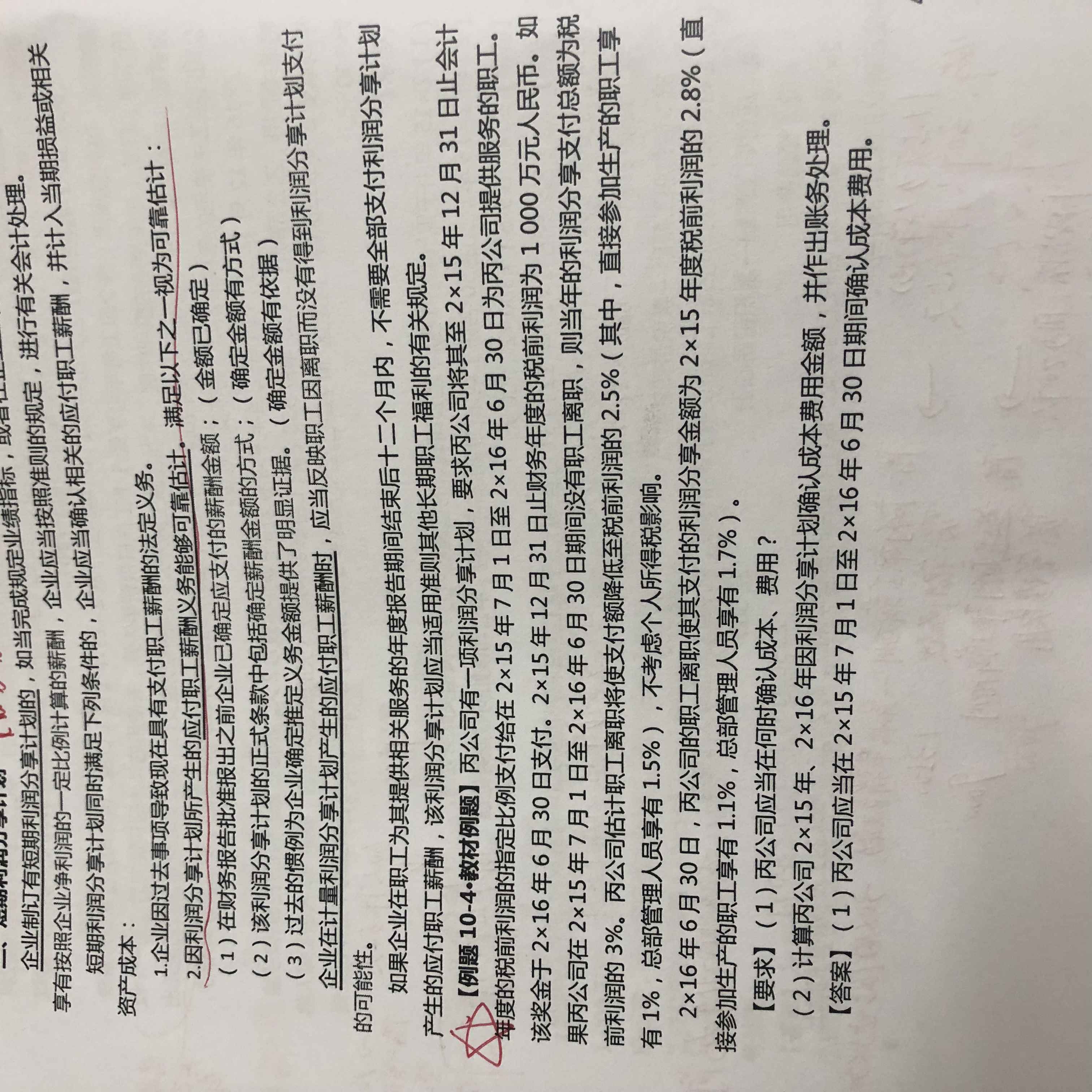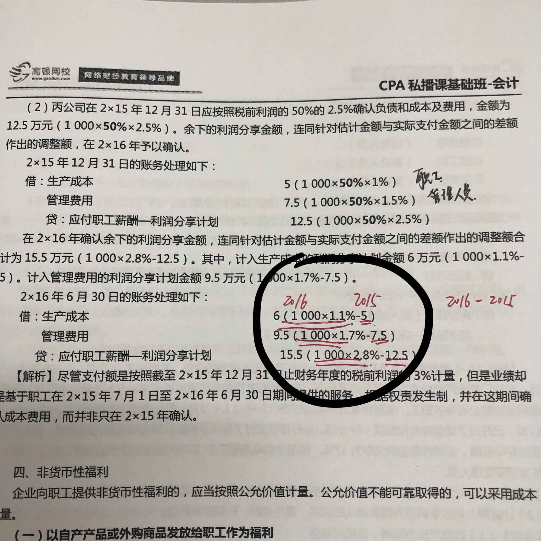 根据权责发生制的要求,我们要在2015年12月31日对利润分享计划的金额做出估计进行确认,这时候只是估计,而在2016年6月30日实际发生时只需要将实际支出的金额减去估计的金额的差额确认即可。