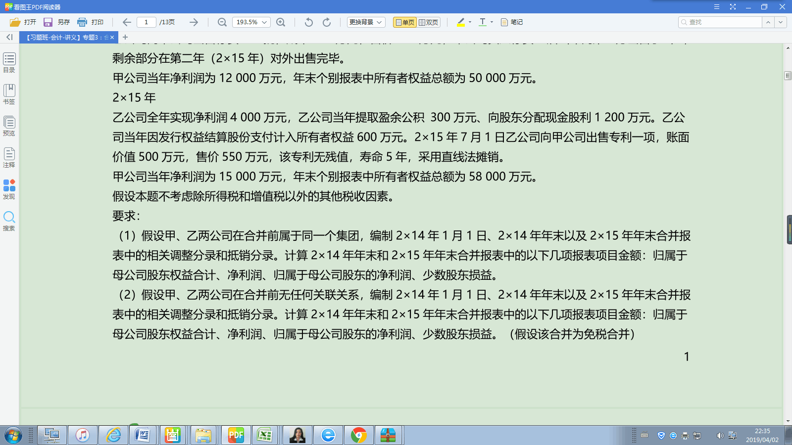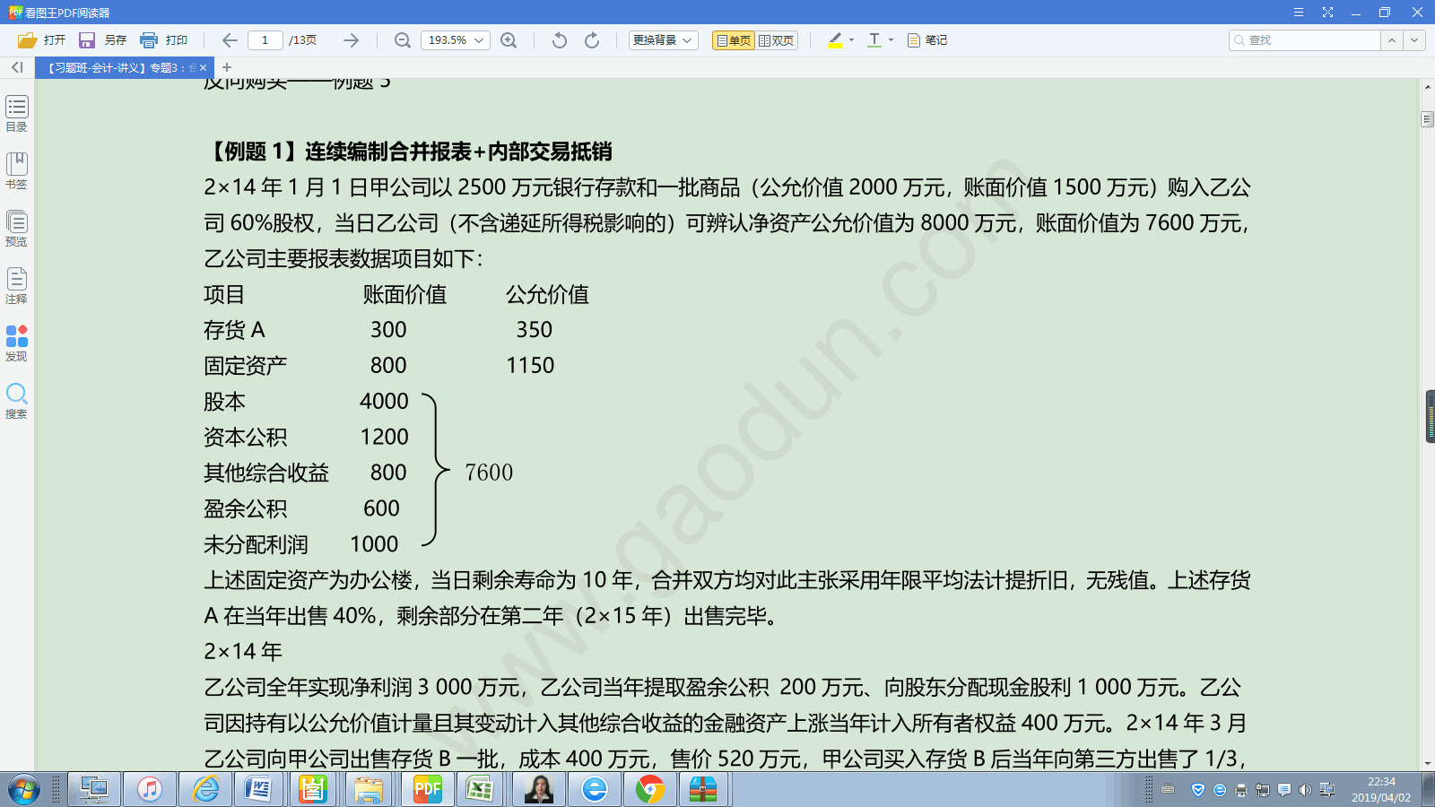 老师,假如2019年1月1日,a公司取得对b公司的控制权,到...