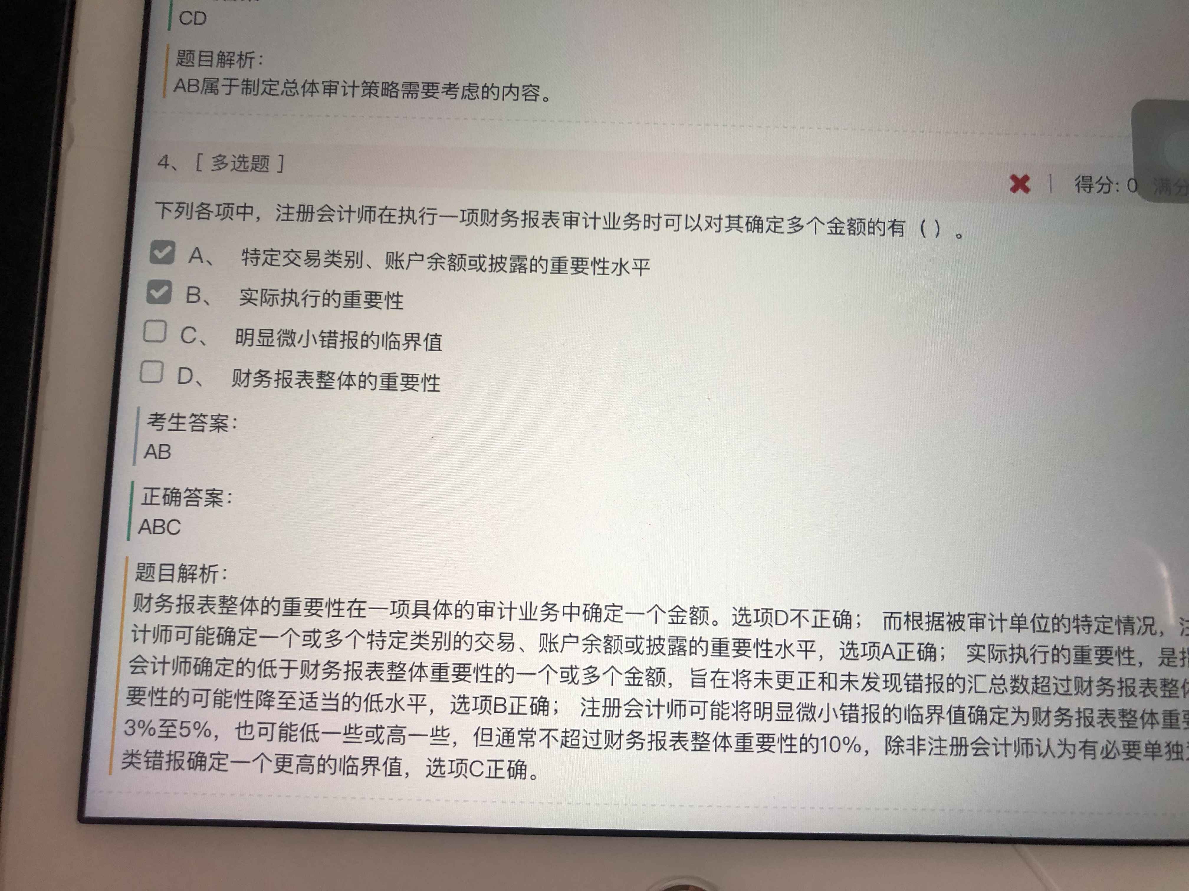老师,实际执行时都是按照实际执行阶段确定的重要性筛查错报的,...