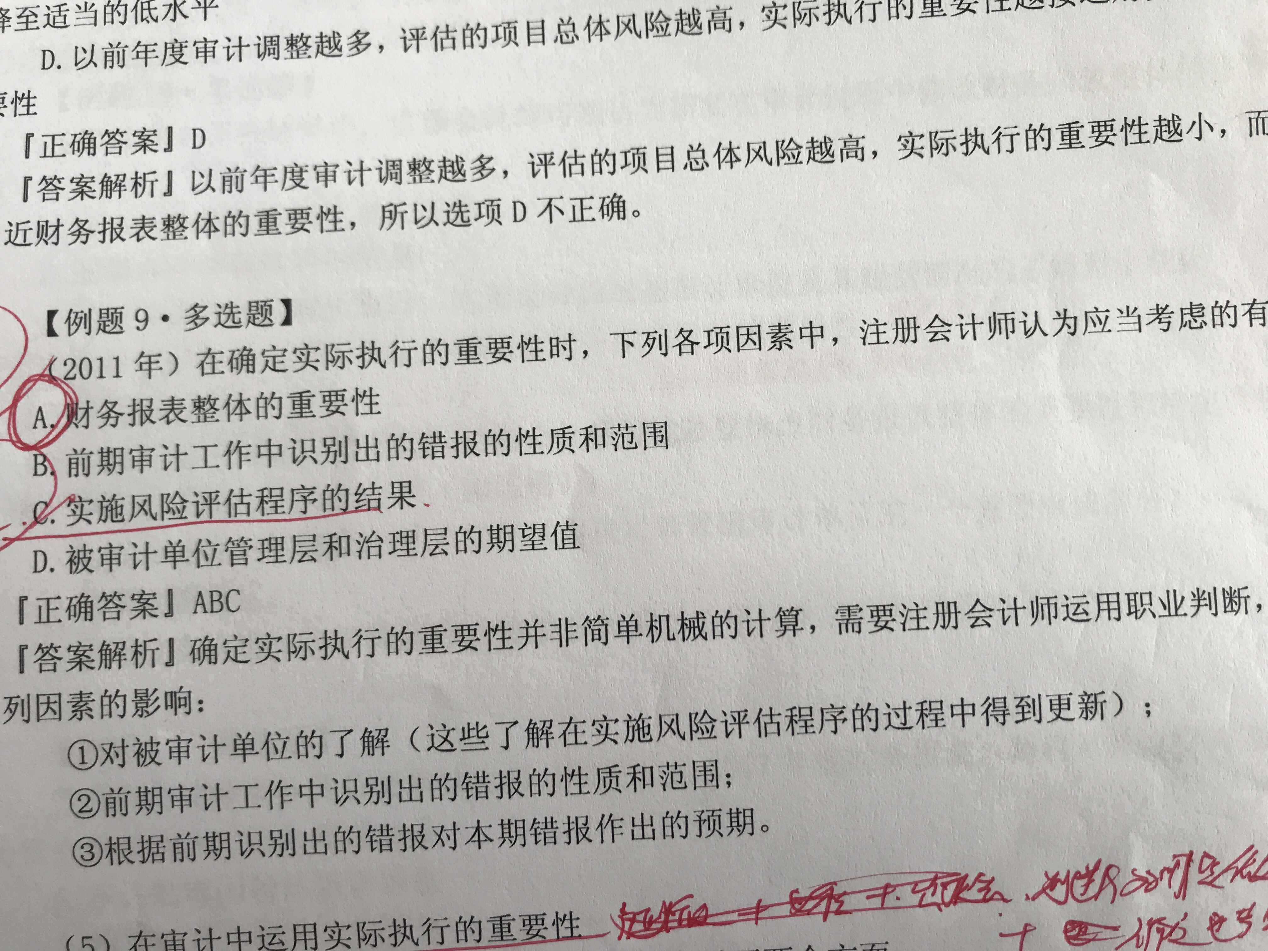 例9,看图片2只有三个考虑因素,我做这道题凭着判断觉得abc都是对的,但是ac并不是定义的考虑意思里面的,那怎么解释呢?因为审计的题基本都是要求一字不差的才正确,这个就不能理解了为什么不在考虑因素里面也选了