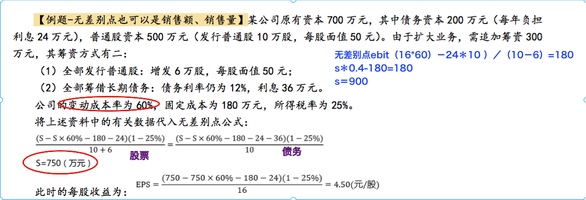 老师,能帮忙看一下这个题吗?我用大股数*大利息-小股数*小利息 /(大股数-小股数)算出来的ebit =180 s=900,答案750,麻烦老师帮忙看一下哪里错了,多谢