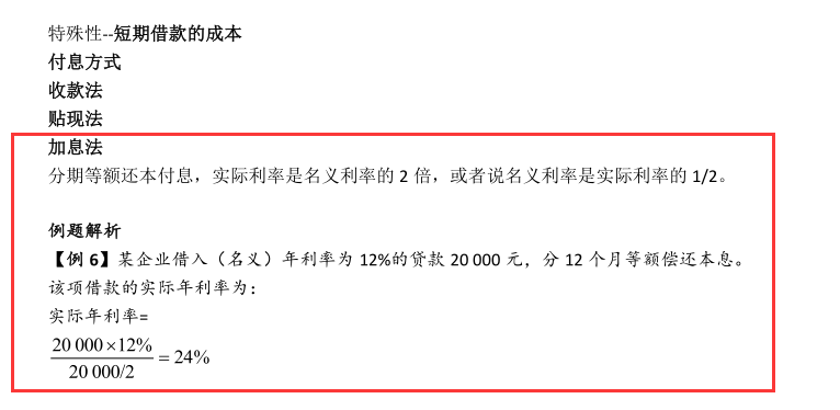 由于贷款分期均匀偿还,借款企业实际上只大约平均使用了贷款本金的半数,却要支付全额利息,所以实际利率=2×报价利率。