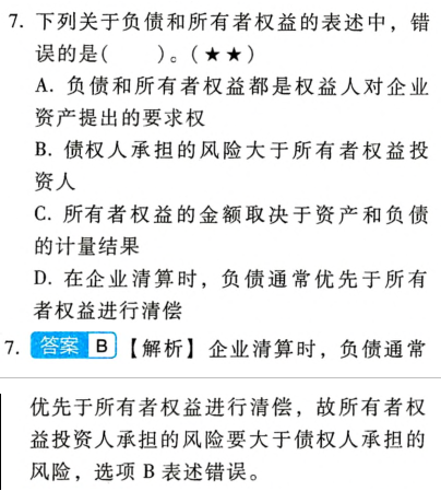 A负债对应的是债权人,有要求企业还债的权利,所有者权益是投资者,有就企业实现的净利润进行分配的权利,所以A正确。