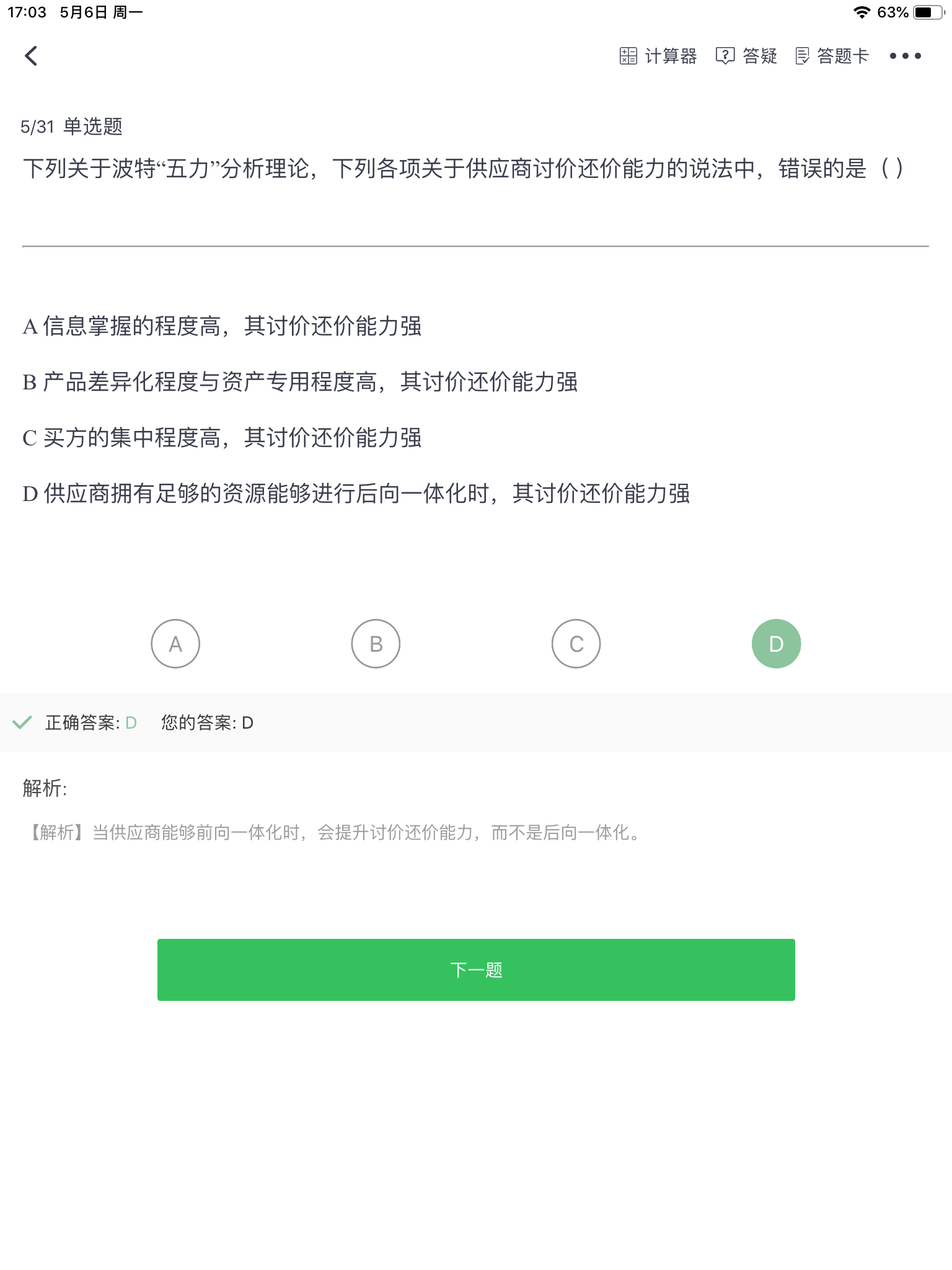 选项C说的,买方集中度越高,指的是供应商作为买方,集中度越高,那供应商的讨价还价能力就越强,选项C可能没表述清楚。