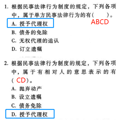 老师好,这两道题,不同问法,授予代理权怎么理解