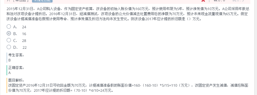 我们2016年末计提减值之后,就把该固定资产看作一项寿命为4年的新的固定资产,按照年数总和法去计提折旧。