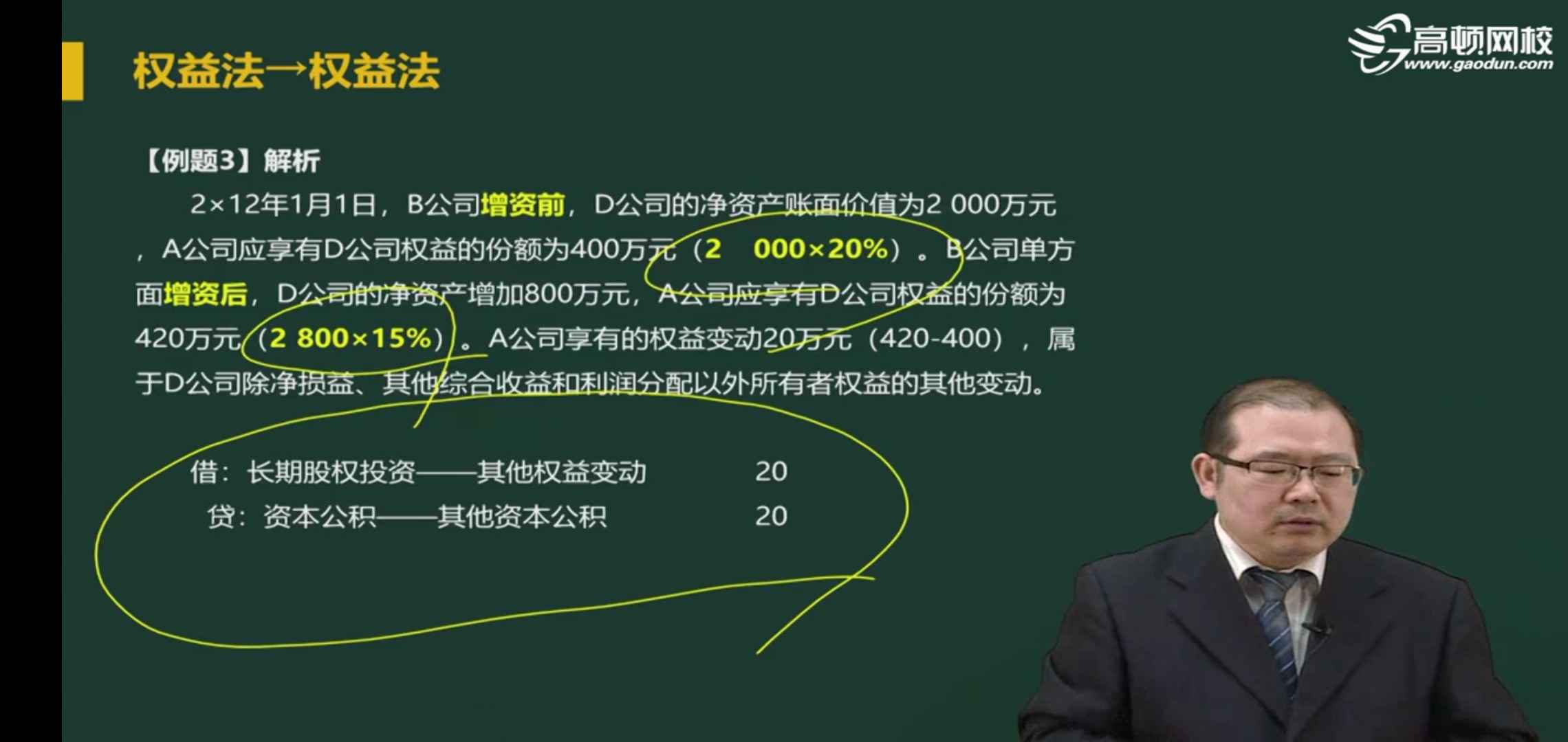 增资后,A公司的持股比例不应该变成是400/2800=14%吗? 15%哪来的???