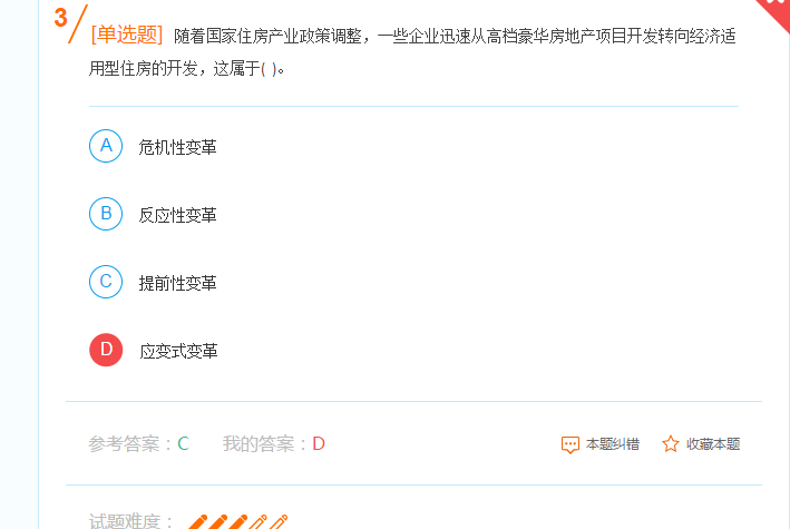 云同学同学你好,题干说了随着国家政策调整,然后房产企业也调整,这就是适应国家;如果国家没有调整,你预见了以后要调整进而调整,这是你说的提前