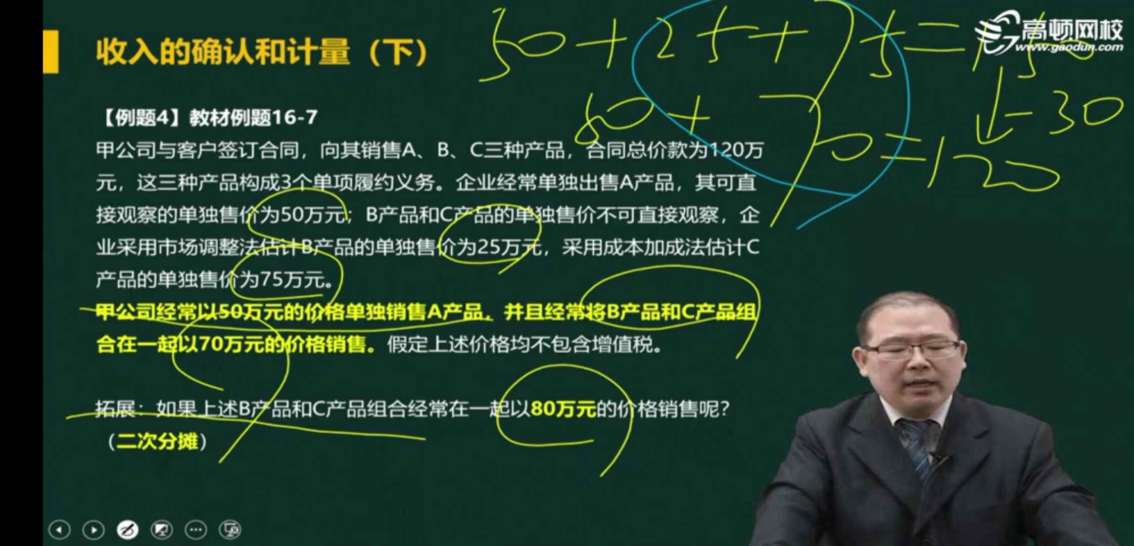 老师我太懂这里说的,拓展里说如果改成60万b和c不合理,因为a就成30%了,这块折扣变多少跟a都没关系呀,都是bc分摊的