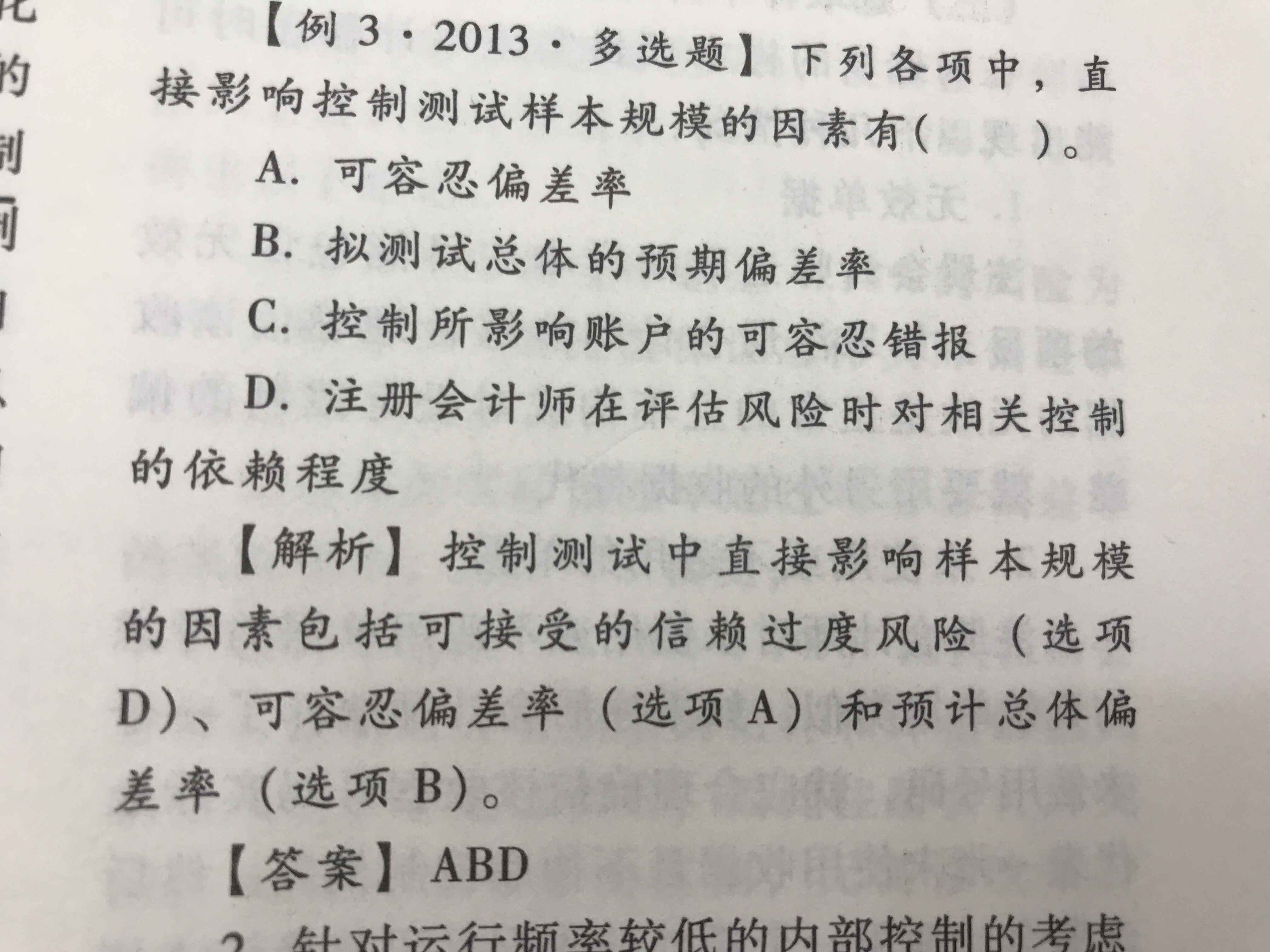 C选项里提到的“可容忍错报”,是影响细节测试的样本规模的一项因素