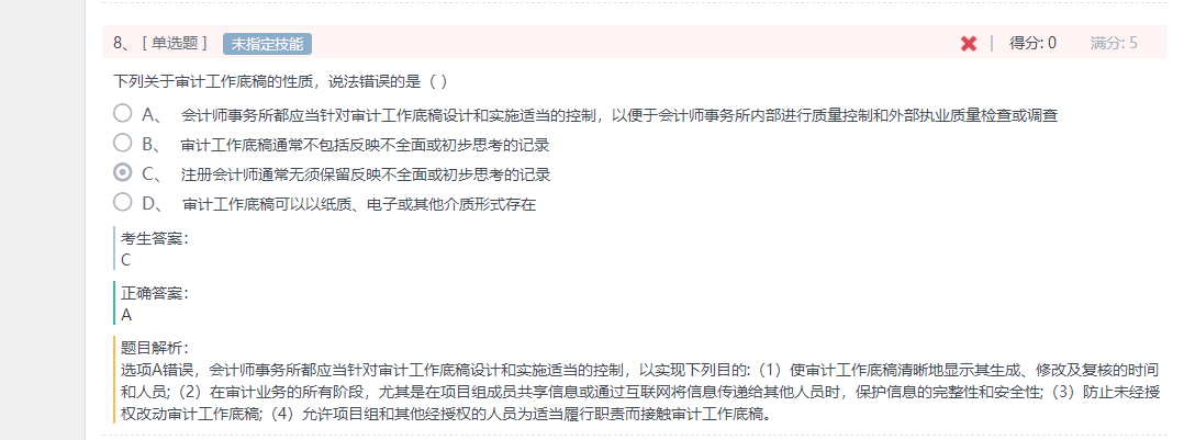 选项A,说的是“应当”,所以后面的目的应该是审计工作底稿的主要目的。而其表述并不是主要目的,只是说也可以实现的目的。