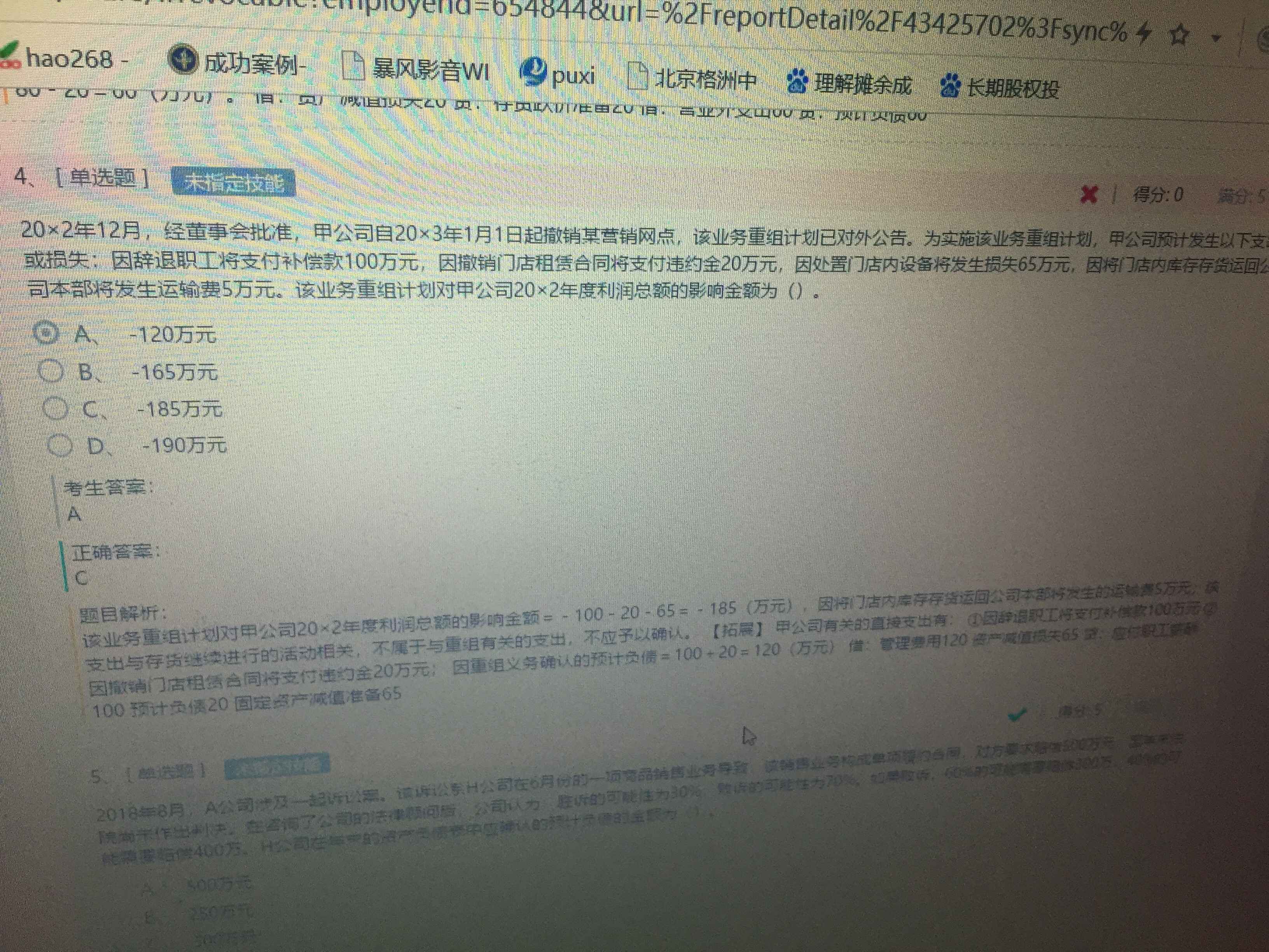 老师,我觉得这题应该是选a吧,65是重组后支出啊,选项说的是重组计划导致的影响,类比第一张图里的c选项